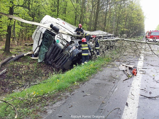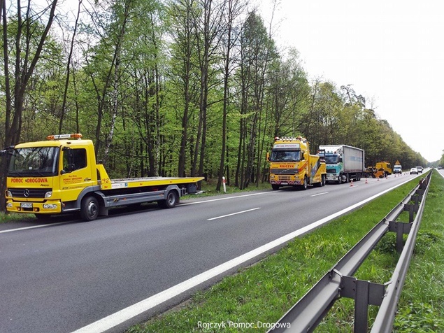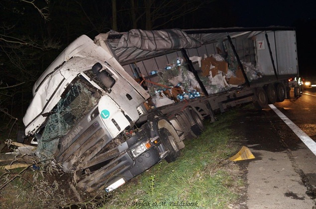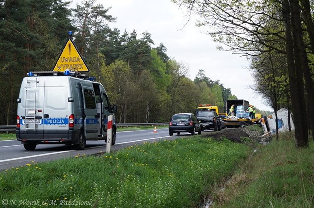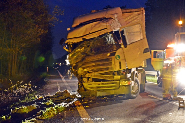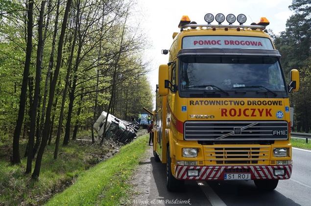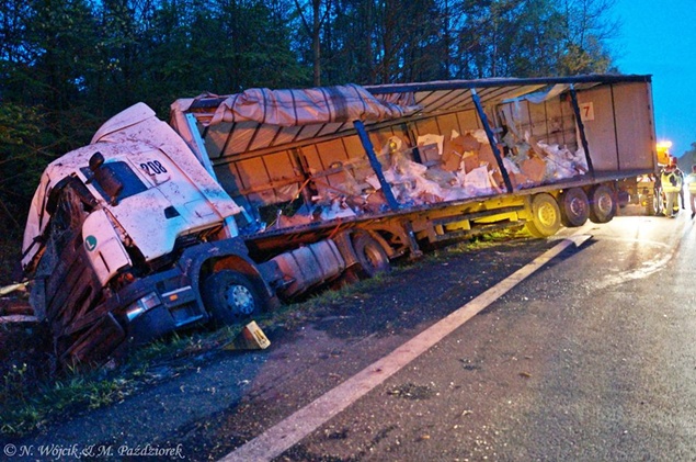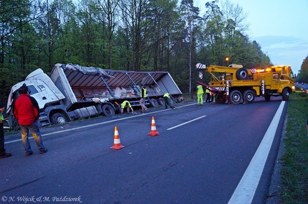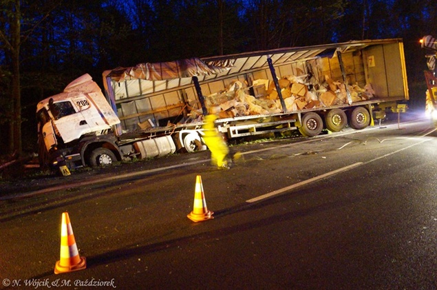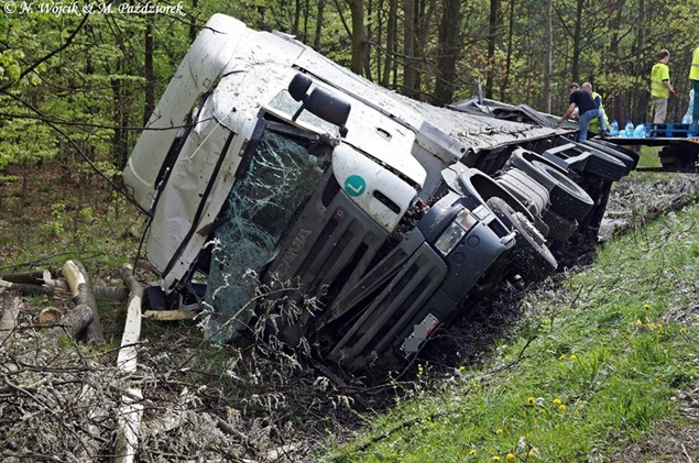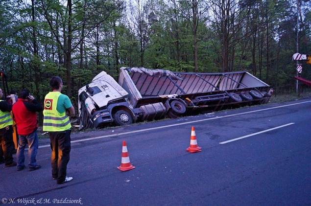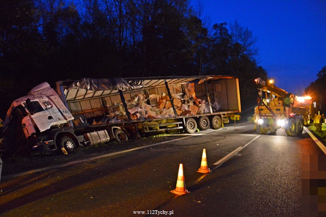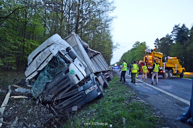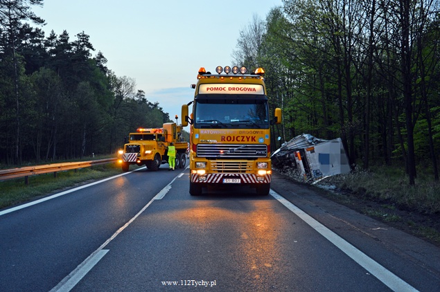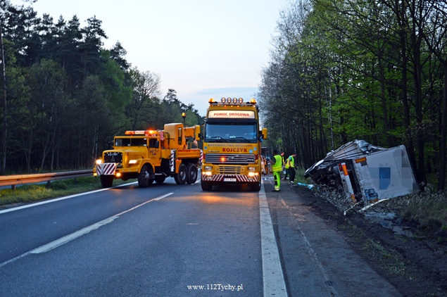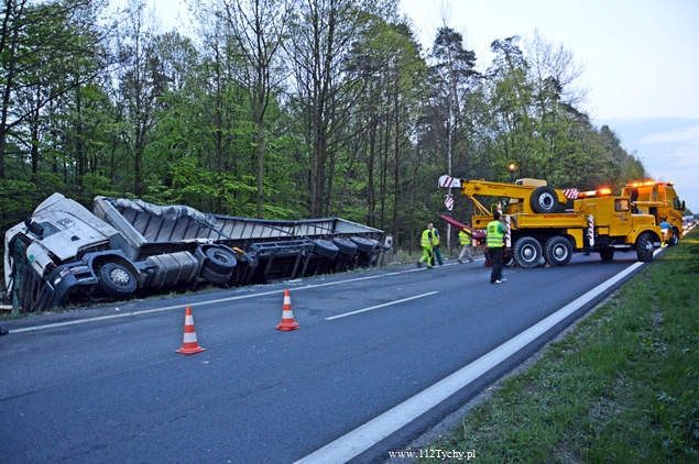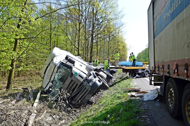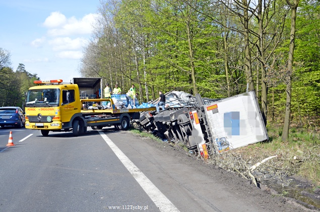 27 kwietnia około godziny 9.45 na DK1 w Kobiórze w kierunku Tychów doszło do zdarzenia drogowego z udziałem samochodu ciężarowego Scania z naczepą. Z nieznanych przyczyn samochód wjechał do przydrożnego rowu. Na miejsce zadysponowane zostały zastępy z JRG Pszczyna, patrol WRD pszczyńskiej Policji oraz karetka pogotowia. Po dotarciu na miejsce okazało się, że kierującemu nic się nie stało. Mimo to został on przebadany przez służby medyczne. Pozostałe służby zabezpieczyły miejsce zdarzenia. Jeden pas ruchu w kierunku Tychów został wyłączony. Na miejsce podstawiony został pojazd zastępczy przez przewoźnika, na którego został przeładowany ładunek wody mineralnej. Na miejscu jest już pomoc drogowa, która po przeładowaniu towaru zajmie się wyciągnięciem pojazdu z rowu. W miejscu zdarzenia występują utrudnienia w ruchu. Około godziny 19.30 DK1 w tym miejscu została całkowicie zamknięta Policja wyznaczyła objazdy. Akcja wyciągania pojazdu trwała około godziny. W tej chwili droga jest sprzątana. Utrudnienia mogą potrwać do około północy. Pszczyńska Policja bada przyczyny tego zdarzenia.
