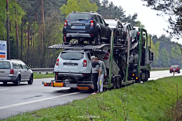 28 kwietnia około godziny 14.30 DK1 w okolicy zjazdu na zameczek Promnice doszło do zdarzenia drogowego z udziałem VW i ciężarówki. Ze względu na pogranicze rejonów działania na miejsce wysłane zostały służby ratownicze z Tychów i Pszczyny. Na pomoc ruszyły trzy zastępy strażaków z JRG Tychy (GBA, GCBA, SCRt), dwa zastępy z JRG Pszczyna (GBA, SLRt), ZRM i patrole WRD z KMP Tychy i KPP Pszczyna.Po dotarciu na miejsce służby zabezpieczyły miejsce i udzieliły pomocy poszkodowanym osobom z samochodu osobowego. Dwie osoby z tego samochodu zostały przewiezione do szpitala w Tychach na badania. Ratownicy z Tychów zostali zawróceni po dotarciu na miejsce. VW uderzył w tył najprawdopodobniej zawracającej lawety. Lewy pas w kierunku Bielska Białej został wyłączony z ruchu. Tworzą się korki. Dokładne okoliczności tego zdarzenia wyjaśniają pszczyńscy Policjanci.