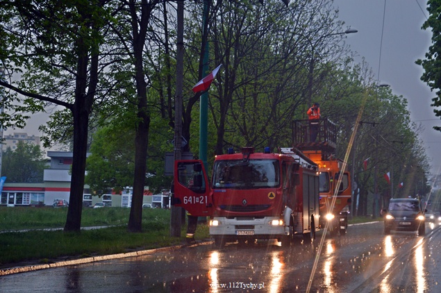 2 maja około godziny 15 nad Tychami rozległy się grzmoty. Z chmur lunął ulewny deszcz, a również gard. Nie było to gradobicie jak niecały rok temu ale jednak.W niektórych miejscach studzienki deszczowe nie były w stanie odbierać tej ilości wody. Na ul. Grota – Roweckiego piorun uderzył w trakcje trolejbusową. Co spowodowało chwilowe wstrzymanie ruchu trolejbusów. Zerwana został jedna z lin nośnych. Na miejsce wezwany został zastęp z JRG Tychy (GBA) i pogotowie techniczne z TLT. Po kilkunastu minutach usterka została usunięta. Zastęp powrócił do koszar. Obyło się na szczęście bez większych zniszczeń i uszkodzeń.