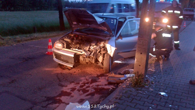 27 maja około godziny 20.30 do dyżurnego bieruńskiej Policji wpłynęło zgłoszenie o zdarzeniu drogowym na ul. Stacyjnej w Chełmie Śląskim. Na miejsce wysłany został patrol WRD bieruńskiej Policji. Policjanci po dotarciu na miejsce stwierdzili, że kierujący Fiatem Seicento uderzył w słup energetyczny. Na miejsce wezwana została karetka pogotowia oraz zastępy strażaków z OSP Chełm Śląski i JRG Tychy (po dwa zastępy). Kierujący samochodem po opatrzeniu pozostał na miejscu. Działania strażaków poza zabezpieczeniem miejsca zdarzenia polegały na odłączeniu zasilania w rozbitym pojeździe i neutralizacji rozlanych płynów eksploatacyjnych. Dodatkowo na miejsce zdarzenia przyjechało pogotowie energetyczne. Po około półtorej godzinie działania zostały zakończone i zastępy powróciły do koszar. Bieruńscy Policjanci wyjaśniają okoliczności tego zdarzenia.