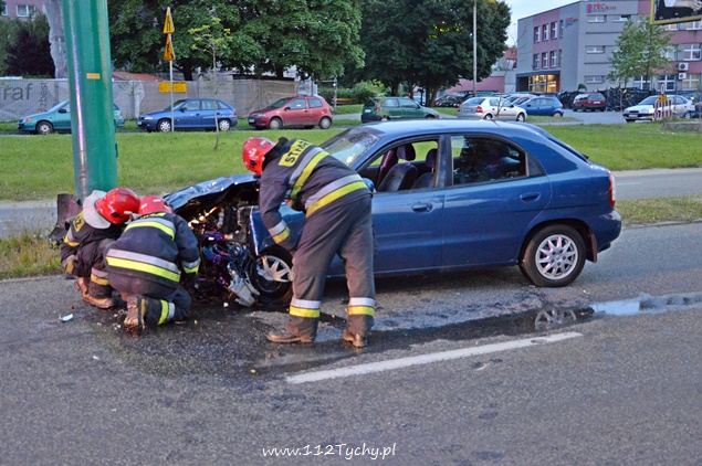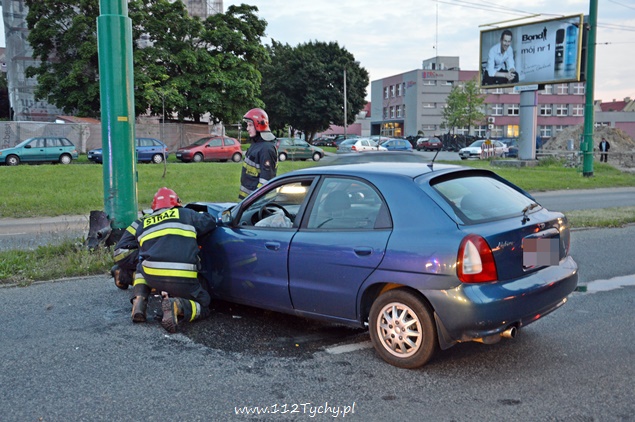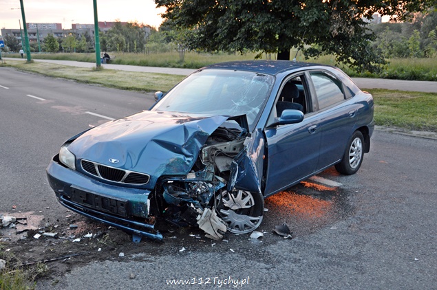 Daewoo Nubira na słupie na ul. Jaśkowickiej