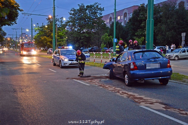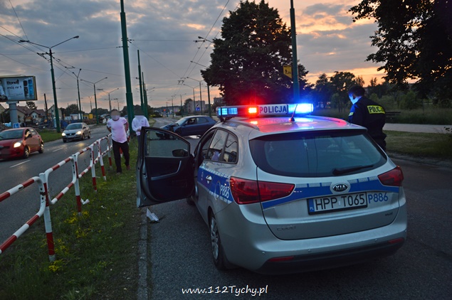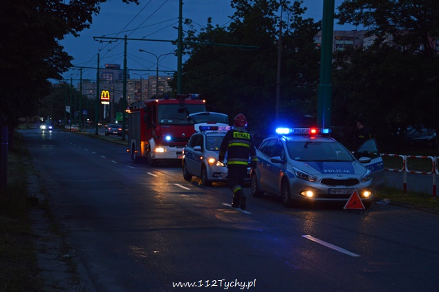 31 maja około godziny 20.30 do dyżurnego tyskiej Policji wpłynęło zgłoszenie o zdarzeniu drogowym na ul. Jaśkowickiej, gdzie to na słupie trakcji trolejbusowej miał się rozbić samochód osobowy Daewoo Nubira. Na miejsce celem potwierdzenia został wysłany jeden z patroli. Po dotarciu na miejsce zgłoszenie się potwierdziło. Samochodem podróżowało dwóch mężczyzn. Ruch w kierunku ul. Stoczniowców był utrudniony. Z powodu wycieku płynów eksploatacyjnych na miejsce wezwany został zastęp strażaków z JRG Tychy (GBA). Mężczyznom nic się nie stało. Po kilku minutach na miejsce dojechał również patrol WRD. Jak się okazało po przebadaniu kierującego prawdopodobną przyczyną utraty panowania nad pojazdem był jego stan trzeźwości – około dwa promile. Kierujący został zatrzymany i przewieziony do KMP celem wykonania dalszych czynności. Działania strażaków poza zabezpieczeniem miejsca zdarzenia polegały dodatkowo na odłączeniu akumulatora oraz neutralizacji rozlanych płynów eksploatacyjnych. Utrudnienia trwały około półtorej godziny.