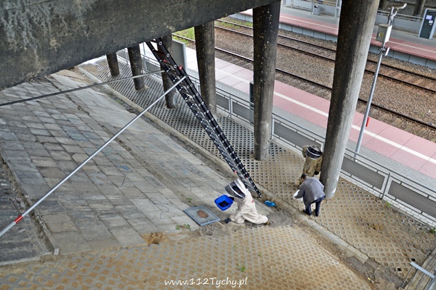 4 czerwca około godziny 10.45 do dyżurnego tyskiej Straży Pożarnej wpłynęło zgłoszenie o roju pszczół pod wiaduktem przy stacji PKP Tychy Roweckiego. Na miejsce wysłany został jeden zastęp z JRG Tychy (GBA). Strażacy po dotarciu na miejsce potwierdzili, że w otworach technologicznych są pszczoły.Na miejsce wezwany został również pszczelarz. Strażacy w specjalnych strojach ochronnych przy użyciu drabiny ratowniczej usunęli pszczoły. Interwencja trwała około godziny.