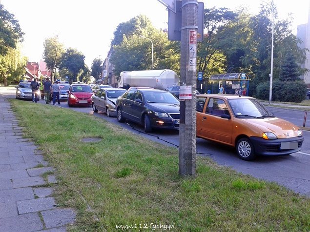 26 czerwca około godziny 17.45 na al. Bielskiej w okolicy przystanku Tychy Targowisko w kierunku Czułowa doszło do zdarzenia drogowego z udziałem czterech samochodów osobowych. Na miejsce wezwane zostały patrole Policji oraz tyska Straż Pożarna. Na szczęście nikomu z uczestników nic się nie stało i skończyło się na uszkodzonych samochodach. Działania strażaków polegały na odłączeniu akumulatorów w uszkodzonych pojazdach, neutralizacji rozlanych płynów eksploatacyjnych oraz pomocy przy ich usunięciu z pasa drogi. Dodatkowo strażacy sprawdzili pobliskie hydranty. Utrudnienia trwały około godzinę. Tyscy Policjanci wyjaśniają zaistniałą sytuację.