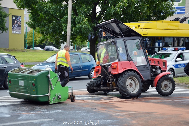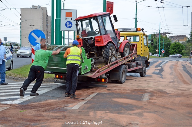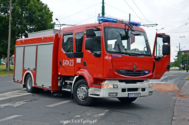 2 lipca około godziny 14.10 dyżurny tyskiej Straży Pożarnej otrzymał zgłoszenie o rozległej plamie oleju na ul. Armii Krajowej na dojeździe do ronda od strony Paprocan. Na miejsce wysłany został jeden zastęp z JRG Tychy (GBA). Po dotarciu na miejsce i rozpoznaniu sytuacji KDR zawiadomił MSK o rozmiarach plamy oraz poprosił o dowiezienie większej ilości Sorbentu. Na miejsce wysłany został zastęp SLKw. Okazało się, że przyczyną wycieku oleju jak i paliwa była awaria traktora, który wykonywał prace na pasie zieleni. Działania strażaków polegały na zneutralizowaniu wycieku przy użyciu Sintanu i Sorbentu. Ze względu na rozmiary wycieku o pomoc poproszona została Policja. Policjanci wyznaczyli objazd. W kierunku centrum miasta przepuszczane były tylko autobusy i trolejbusy, natomiast pozostałe pojazdy kierowane były na objazd ulicami Turkusową i Tischnera. Utrudnienia trwały ponad godzinę.