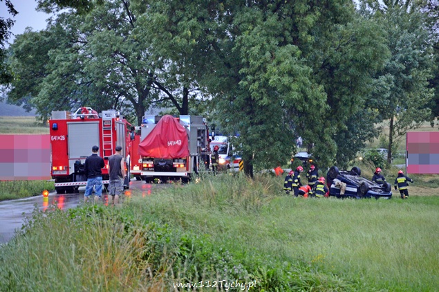 9 lipca około godziny 20:00 do MSK wpłynęło zgłoszenie o wypadku samochodowym w Tychach, na ulicy Bieruńskiej. Kierujący pojazdem, marki Ford Fiesta młody mężczyzna, najprawdopodobniej nie zachował należytej ostrożności na śliskiej nawierzchni drogi, utracił panowanie nad pojazdem i wpadł do przydrożnego rowu – dachując. Działania strażaków polegały na wydobyciu osoby poszkodowanej z pojazdu i zabezpieczeniu miejsca zdarzenia. Nieprzytomny kierujący został zabrany do Szpitala Wojewódzkiego w Tychach. Dalsze okoliczności zdarzenia wyjaśnią policjanci WRD Tychy.