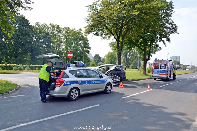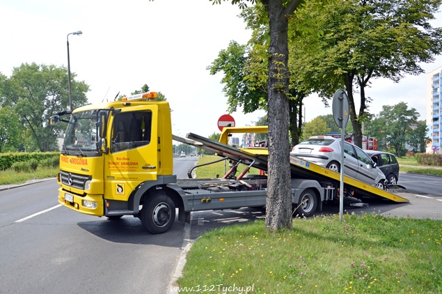 18 lipca około godziny 9.20 na al. Bielskiej w okolicy wyjazdu ze Szpitala Miejskiego doszło do kolizji Forda i Peugeota. Wyjeżdżający z drogi podporządkowanej kierujący Fordem włączając się do ruchu nie ustąpił pierwszeństwa kierującemu Peugeotem i doszło do kolizji. Obydwa pojazdy wylądowały na zawrotce, a Ford zatrzymał się na drzewie. Na miejsce wezwana została karetka pogotowia oraz patrol WRD tyskiej Policji. Na szczęście kierującym nic się nie stało i po opatrzeniu pozostali na miejscu. Ze względu na uszkodzenia pojazdów na miejsce wezwana została Straż Pożarna. Strażacy posprzątali rozrzucone elementy oraz pomogli usunąć pojazdy z drogi. Kierujący Fordem został ukarany mandatem za spowodowanie kolizji.