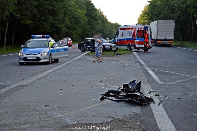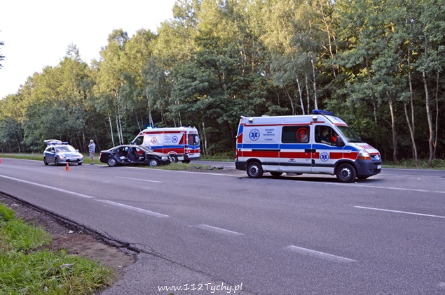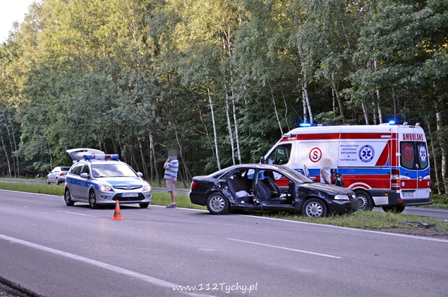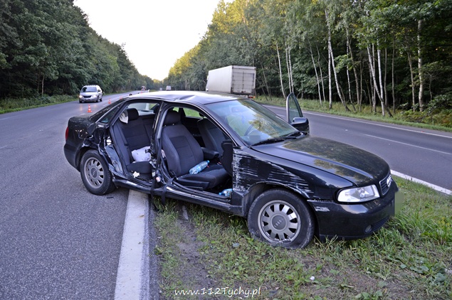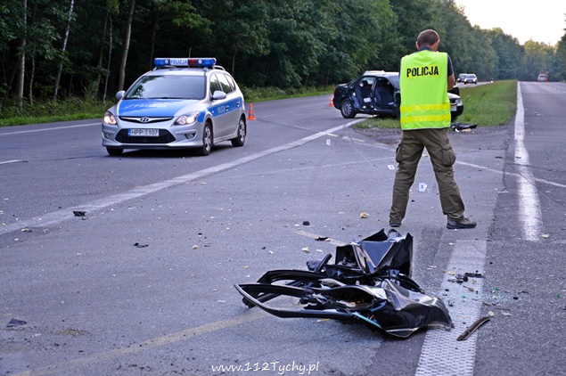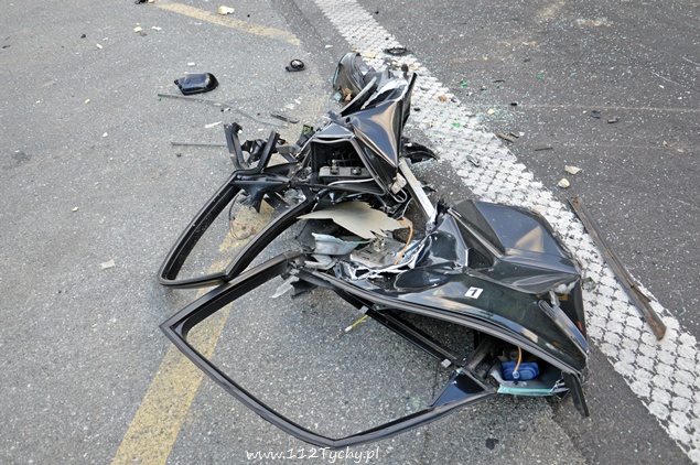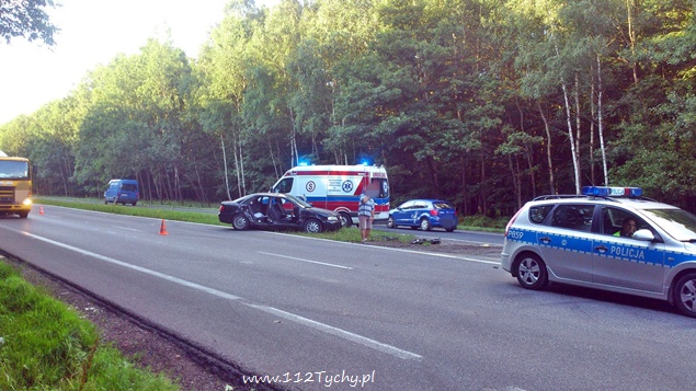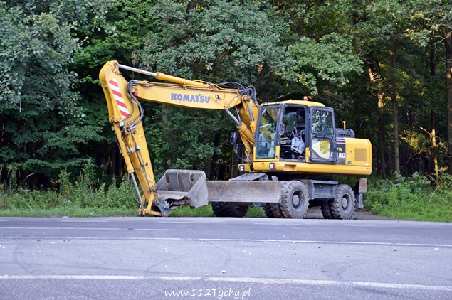 5 sierpnia około godziny 18:10 do dyżurnego KMP Tychy wpłynęło zawiadomienie ,o zdarzeniu drogowym na DK-86 na wysokości stacji benzynowej „Shell”, w którym udział brały samochód osobowy Audi oraz koparka. Na miejsce wysłano patrol policji oraz dwa ZRM. Po dotarciu na miejsce okazało się, że drzwi z prawej strony w samochodzie są wyrwane. Siedzące po tej stronie dwie osoby: kobieta i mężczyzna zostali ranni. Na czas działań ratowniczych po jednym pasie w stronę Katowic i centrum Tychów zostały wyłączone z ruchu. Ze wstępnych ustaleń przybyłych na miejsce Policjantów i relacji kierujących wynika, że kierujący koparką „Komatsu” nie zachował szczególnej ostrożności przy zmianie pasa ruchu i tzw. lemieszem zahaczył przejeżdżający lewym pasem samochód osobowy doprowadzając do zdarzenia. Prawy bok samochodu został otwarty jak przysłowiowa konserwa. Obydwoje pasażerów samochodu osobowego zostało przewiezionych do szpitala w Tychach na dokładniejsze badania. Kierujący obydwoma pojazdami byli trzeźwi. Jak się okazało po kilkunastu minutach ranna kobieta doznała złamania ręki. Ze względu na zakwalifikowane tego zdarzenia jako wypadek na miejsce wezwany został policyjny technik. Obrażenia osób rannych spowodowały, że sprawa swój finał znajdzie w sądzie. Policjanci z KMP Tychy prowadzą dalsze dochodzenie w tej sprawie.