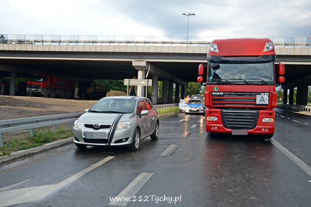 15 sierpnia około godziny 16.30 na DK 1 doszło kolizji samochodu ciężarowego DAF z naczepą z samochodem osobowym Toyota. Na miejsce skierowany został patrol WRD tyskiej Policji. Ze wstępnych ustaleń wynika, że kierujący Toyotą obywatel Niemiec nie ustąpił pierwszeństwa prawidło jadącej ciężarówce. Doszło do kolizji. W samochodzie osobowym uszkodzeniu uległ lewy bok. O pomoc w ustaleniu dokładnego przebiegu zdarzenia poproszony został technik. W czasie działań Policji jeden pas ruchu w kierunku Bielska – Białej był wyłączony z ruchu. Zdarzenie miało miejsce dokładnie pod wiaduktem z drogą DK 44. Tyscy Policjanci prowadzą dochodzenie w tej sprawie celem ustalenia dokładnego przebiegu tego zdarzenia.