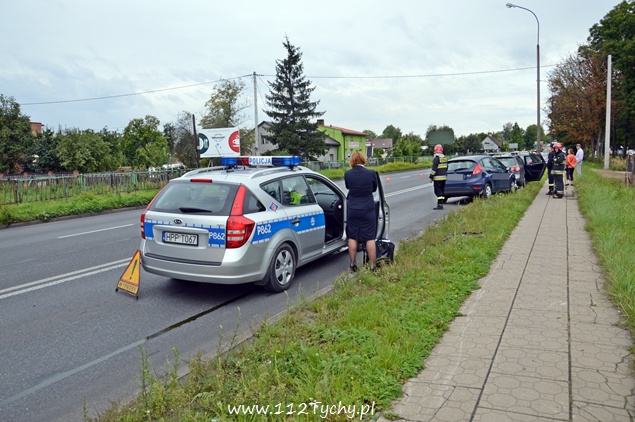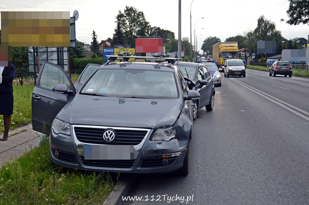 9 sierpnia około godziny 9.30 dyżurny tyskiej Policji otrzymał zgłoszenie o kolizji trzech samochodów osobowych na ul. Mikołowskiej. Na miejsce wysłany został jeden z podległych patroli. Na miejscu okazało się, że w zdarzeniu brały udział Ford, VW i Fiat. Ze wstępnych ustaleń wynika, że kierująca Fordem kobieta nie zachowała należytej odległości od poprzedzającego ją VW i uderzyła w jego tył, a VW siłą rozpędu uderzył w tył poprzedzającego Fiata. Nikomu z kierujących ani pasażerów nic się nie stało. Wszyscy kierujący byli trzeźwi. Pojazdy zostały zepchnięte na pas zieleni jednakże w kierunku Mikołowa występowały utrudnienia. Ze względu na wyciek płynów eksploatacyjnych z jednego z pojazdów na miejsce zadysponowana została tyska Straż Pożarna. W sile jednego zastępu (GBA) po kilku minutach strażacy byli na miejscu. Działania strażaków polegały na dodatkowym zabezpieczeniu miejsca zdarzenia i neutralizacji wylanych płynów. Przez około dwie godziny występowały utrudnienia. Tyscy Policjanci wyjaśniają zaistniałe zdarzenie.