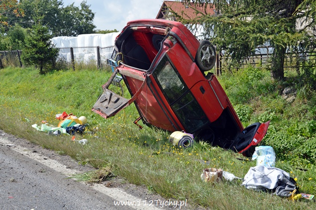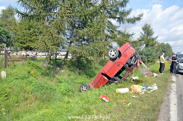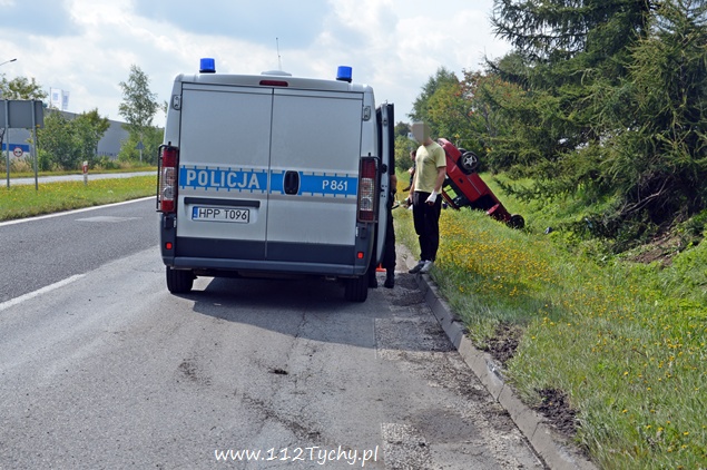21 sierpnia około godziny 15.10 do dyżurnego tyskiej Policji wpłynęło zgłoszenie o dachowaniu samochodu osobowego na ul. Turyńskiej w ciągu DK 44 na pasie w kierunku Tychów. Na miejsce skierowany został jeden z patroli prewencji celem sprawdzenia i zabezpieczenia miejsca zdarzenia. Po dotarciu na miejsce okazało się, że kierujący samochodem Opel Astra z niewyjaśnionych przyczyn utracił panowanie nad swoim pojazdem i wjechał do przydrożnego rowu kilkakrotnie dachując. Kierujący Oplem poza rozcięciem dłoni nie doznał innych obrażeń. Po kilkunastu minutach na miejsce dojechał patrol WRD. Kierujący samochodem osobowym był trzeźwy. Za spowodowanie kolizji został ukarany mandatem karnym, a za zniszczenia w samochodzie został mu zatrzymany dowód rejestracyjny. Ze względu na wycieki płynów eksploatacyjnych dodatkowo na miejsce wezwana została tyska straż pożarna (GBA). Przez prawie dwie godziny prawy pas ruchu w kierunku Tychów był wyłączony z ruchu.