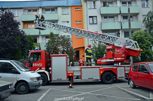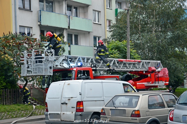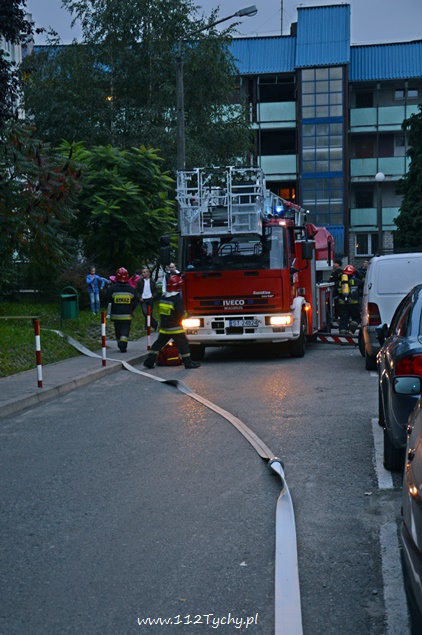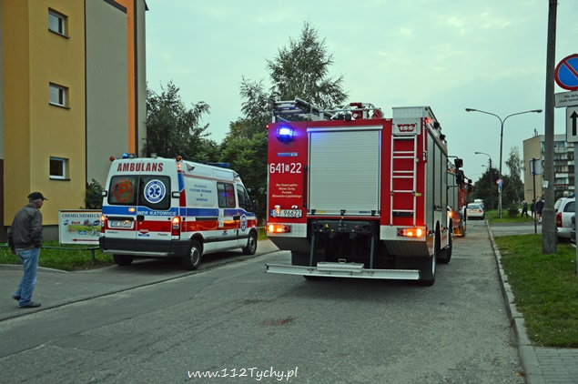 25 września około godziny 18.25 do dyżurnego tyskiej Straży Pożarnej wpłynęło zgłoszenie o dymie wydobywającym się z okien jednego z mieszkań na trzecim piętrze w budynku wielorodzinnym na ul. Hierowskiego. Dodatkowo dyżurny został poinformowany, że w mieszkaniu może znajdować się starsza osoba. Na miejsce zadysponowany został pluton gaśniczy z JRG Tychy (2x GBA, GCBA, SD), karetka pogotowia oraz patrol Policji. Po dotarciu na miejsce strażacy natychmiast przystąpili do sprawiania drabiny mechanicznej, rozwinięcia linii gaśniczej klatką schodową oraz podjęli próbę wejścia do mieszkania wraz z ratownikami medycznymi. Okazało się, że drzwi do mieszkania są otwarte i pomoc drabiny nie będzie potrzebna. W mieszkaniu strażacy z ratownikami zastali nieprzytomną kobietę. Została u poszkodowanej zastosowana tlenoterapia. Po kilku chwilach kobieta odzyskała przytomność. Powodem zadymienia była pozostawiona na gazie potrawa. Na miejscu zdarzenia pojawili się przedstawiciele rodziny kobiety. Po przebadaniu lokatorka została przekazana pod opiekę członków rodziny. Działania strażaków polegały dodatkowo na przewietrzeniu mieszkania i sprawdzeniu okolicznych hydrantów. Na czas trwania działań ratowniczych ruch na ul. Hierowskiego w okolicy budynku był całkowicie wstrzymany. O zdarzeniu poinformowani zostali również przedstawiciele administracji budynku. Po około 40 minutach działania zostały zakończone i służby wróciły do koszar.