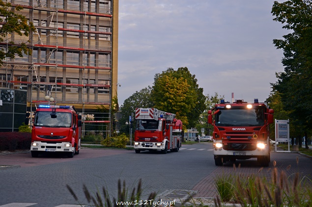 30 września około godziny 17.30 dyżurny tyskiej Straży Pożarnej otrzymał zgłoszenie przez system powiadamiania, o zagrożeniu pożarowym w budynku UM Tychy. Na miejsce wysłane zostały trzy zastępy z JRG Tychy (GBA, GCBA, SD). Po wejściu do budynku i jego sprawdzeniu okazało się, że nie ma żadnego zagrożenia, a przyczyną alarmu mogą być prowadzone prace remontowe lub uszkodzenie czujki. Po dokładnym sprawdzeniu budynku i sprawdzeniu okolicznych hydrantów po około 20 minutach działania zostały zakończone i strażacy wrócili do koszar.