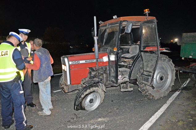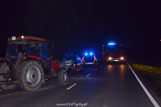 30. września około godziny 20 do dyżurnego KPP Bieruń wpłynęło zgłoszenie o kolizji na ulicy Oświęcimskiej. Ze zgłoszenia wynikało, że samochód osobowy marki Opel Astra zderzył się czołowo z ciągnikiem rolniczym. Na miejsce został wysłany patrol policji z KPP Bieruń celem sprawdzenia. Po dotarciu na miejsce informacja potwierdziła się. W związku z tym, że kolizja miała miejsce na terenie działania KMP Tychy na miejsce został wysłany patrol WRD Tychy. Dodatkowo zadysponowano zastęp z JRG Tychy (GBA) oraz zastęp z OSP Bieruń Stary (GCBA). Na czas działań strażaków ulica Oświęcimska na wysokości toru testowego FAP była zamknięta dla ruchu. Działania strażaków polegały na usunięciu płynów eksploatacyjnych uszkodzonych pojazdów z jezdni, oraz zabezpieczenia miejsca zdarzenia. Nikt nie odniósł obrażeń. Kierujący obu pojazdów byli trzeźwi. Po około 1,5 godziny działania zostały zakończone.