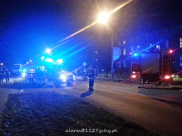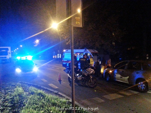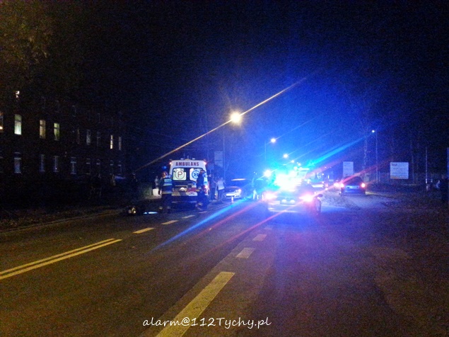 10 października około godziny 20 jadący do pożaru trawy na ul. Katowickiej w Tychach zastęp 641s23 GBA JRG Tychy natknął się na wypadek. W zdarzeniu uczestniczył skuter, oraz samochód osobowy marki Skoda. Na miejsce dodatkowo, zadysponowano kolejny zastęp 641s22 GBA JRG Tychy oraz dwa zespoły pogotowia ratunkowego, a także patrol policji. W wypadku poszkodowane zostały dwie osoby podróżujące skuterem. Jeden z poszkodowanych mężczyzn został odwieziony do Szpitala Wojewódzkiego w Tychach. Na miejsce został skierowany technik kryminalistyki, miejsce wypadku sprawdzał także przybyły tam prokurator. Przyczyny wypadku ustalą policjanci „Tyskiej” drogówki. Ruch na ul. Katowickiej był utrudniony.
