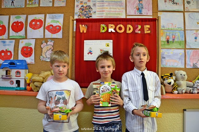 Wszyscy uczestnicy konkursu zostali nagrodzeni – zdrowymi smakołykami oraz dyplomami. Dodatkowymi nagrodami były odblaski, które zostały sprezentowane przez Fundację „A Widzisz”. Patronat medialny nad konkursem objął portal 112Tychy.pl