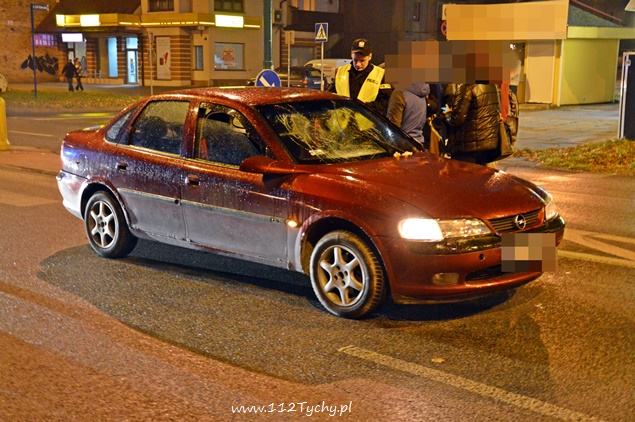7 listopada około godziny 21:45 do dyżurnego KMP Tychy wpłynęło zgłoszenie o potrąceniu pieszego na ul. Dmowskiego na wysokości piekarni „Kłos” przez kierującą samochodem marki Opel Vectra. Na miejsce został wysłany patrol policji, oraz ZRM. Poszkodowany mężczyzna został przewieziony do szpitala na dalsze badania. Ze wstępnych ustaleń policji oraz zeznań świadka wynikało, że prowadząca pojazd nie ustąpiła pierwszeństwa pieszemu, który znajdował się na pasach, przepuszczony przez inny pojazd ,czym doprowadziła do potrącenia. Miejsce zdarzenia zostało zabezpieczone przez jednego z naszych redaktorów wraz z funkcjonariuszami prewencji. Na miejsce zdarzenia wezwany został również policyjny technik. W czasie wykonywania dokumentacji ruch na ul. Dmowskiego w kierunku AUCHAN-a odbywał się pasem pod prąd (kierowany przez Policję). Dodatkowo okazało się, że kierująca nie posiada uprawnień do kierowania pojazdami. Badanie prowadzącej pojazd wykazało że jest trzeźwa. Utrudnienia w ruchu trwały do godziny 1 w nocy. Dalsze czynności prowadzą tyscy Policjanci.