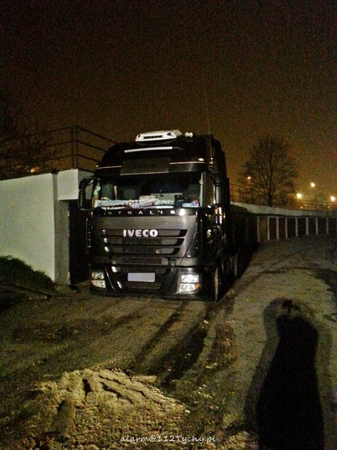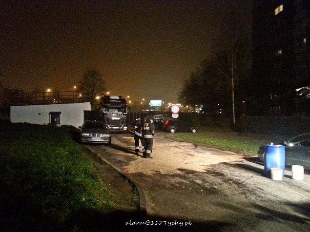 9 listopada około godziny 18 do MSK w Tychach wpłynęło zgłoszenie od Straży Miejskiej o wycieku oleju napędowego z ciężarówki IVECO zaparkowanej na parkingu przy ul. Hierowskiego. Na miejsce skierowane zostały dwa zastępy z JRG Tychy (GBA, SCRt). Po dotarciu na miejsce i rozpoznaniu sytuacji KDR podjął decyzję o konieczności wezwania na miejsce kolejnego zastępu (SLKw), który miał na miejsce dowieźć dodatkowe materiały (sorbent, piasek, beczka na zużyte materiały). Jak się okazało doszło do uszkodzenia zbiornika. Działania strażaków polegały na neutralizacji rozlanego oleju napędowego, zatamowaniu wycieku, a dodatkowo na oświetleniu miejsca akcji. Po kilkudziesięciu minutach wyciek został zneutralizowany. Celem wywozu zużytego sorbentu i piasku zastęp SLKw został odesłany do koszar, a w jego miejsce przybył zastęp SCKw. Strażacy działali na miejscu ponad 3 godziny. W tym czasie ruch odbywał się z niewielkimi utrudnieniami.