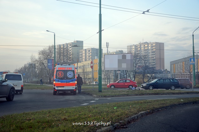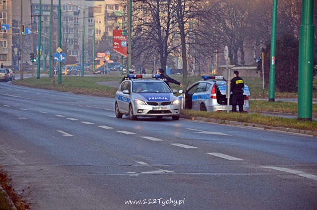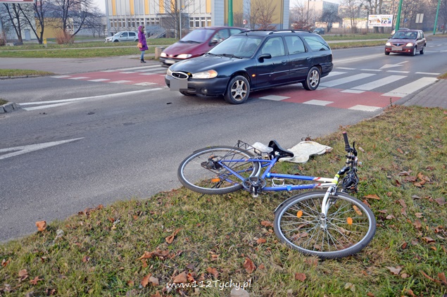 4 grudnia po godzinie 8 rano na oznakowanym przejściu dla pieszych z wyznaczoną drogą dla rowerów na ul. Żwakowskiej przy rondzie Polonia doszło do potrącenia rowerzystki przez kierującego samochodem Ford. Na miejsce wezwana została załoga pogotowia ratunkowego oraz patrol WRD tyskiej Policji. Poszkodowana kobieta została zabrana do szpitala na dokładne badania. Na czas udzielania pomocy medycznej poszkodowanej jak i wykonania dokumentacji przez policjantów pas ruchu ul. Żwakowskiej do ronda został wyłączony z ruchu. Objazd prowadził w prawo w al. Bielską. Ze względu na rodzaj zdarzenia na miejsce wezwany został Policyjny technik. Policjanci prowadzą dalsze czynności w tej sprawie.