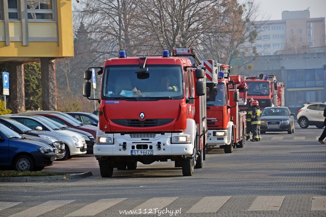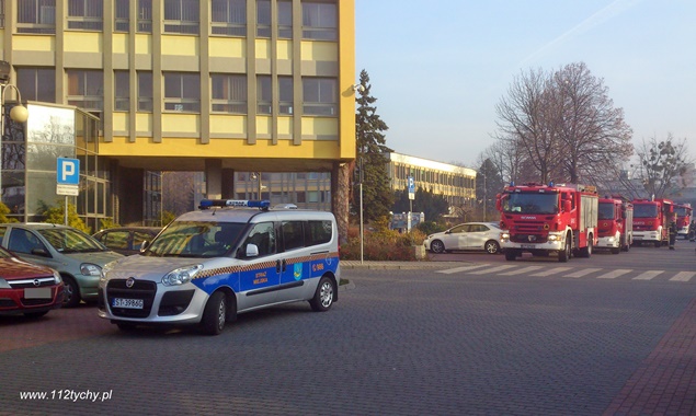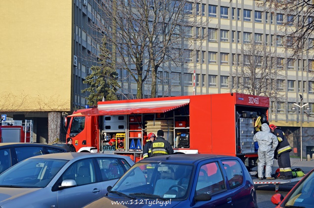 4 grudnia około godziny 12:40 do MSK Tychy wpłynęło zgłoszenie o przesyłce dostarczonej do sekretariatu Prezydenta Miasta, z której wysypała się nieznana substancja. Na miejsce zadysponowano 4 zastępy z JRG Tychy (GBA, GCBA, SCRt, SD). Po kilku minutach na miejsce dojechał również z-ca KM PSP Tychy ( SLOp). Dodatkowo na miejsce zadysponowane zostały patrole straży miejskiej i ZRM celem zabezpieczenie terenu działań. Parking przy urzędzie został zamknięty. Po rozpoznaniu sytuacji zapadła decyzja o wycofaniu trzech zastępów JRG Tychy, (GBA, SD i SCRt), w miejsce których zadysponowany został pluton ratownictwa chemiczno-ekologicznego z jednostki w Katowicach Piotrowicach. Po przybyciu na miejsce ratownik w specjalnym kombinezonie ochronnym sprawdził zawartość przesyłki. Nie stwierdzono żadnego zagrożenia chemicznego i biologicznego. Po zabraniu substancji z pomieszczenia została wykonana jego dekontaminacja. Zgodnie z rozporządzeniem Wojewody śląskiego, materiał został zabezpieczony przez ratowników, a następnie przekazany pracownikom Wojewódzkiej Stacji Sanitarno-Epidemiologicznej. To pracownicy SAN-EPID – u określą dokładnie co to była za substancja. Po około 2 godzinach działania zostały zakończone.