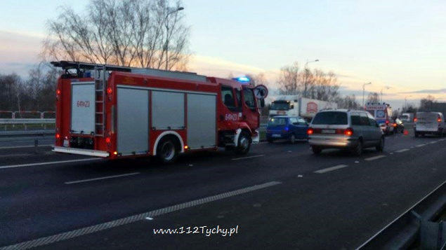 11 grudnia około godziny 15.20 na DK1 na lewym pasie w kierunku Bielska Białej doszło do kolizji drogowej. Na tył hamującej Skody najechał Fiat. Zdarzenia miało miejsce na wysokości jednostki tyskiej Straży Pożarnej. Na miejsce natychmiast udał się jeden zastęp z JRG Tychy (GBA) oraz ZRM. Wezwana została również Policja. Jedna z osób uczestniczących w zdarzeniu została zaopatrzona przez przybyły na miejsce ZRM. Działania strażaków na miejscu polegały na zabezpieczeniu miejsca zdarzenia, odłączeniu akumulatora w rozbitym Fiacie oraz neutralizacji wylanych płynów eksploatacyjnych. Utrudnienia trwały około godziny.