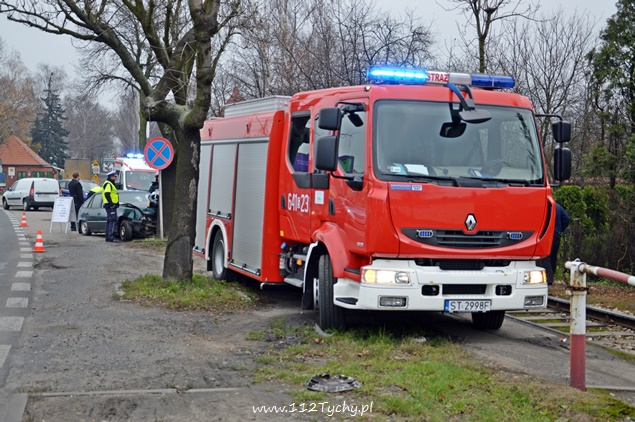 30 stycznia około godziny 7.20 do MSK w Tychach wpłynęło zgłoszenie o zdarzeniu drogowym na ul. Czarnej. Na miejsce zdarzenia wysłane zostały cztery zastępy z JRG Tychy (GBA, GBAPr, GCBA, SCRt, ZRM oraz patrole Policji. Po dotarciu na miejsce okazało się, że doszło do zderzenia Skody Roomster z Fiat-em Seicento. Łącznie samochodami podróżowało sześć osób (czworo dorosłych i dwoje dzieci). Kierujący Fiat – em został uwięziony w swoim pojeździe. Strażacy przy użyciu specjalistycznego sprzętu wykonali dostęp do poszkodowanego i na desce ortopedycznej przekazali mężczyznę pod opiekę ratowników medycznych. Mężczyzna został przetransportowany do szpitala. Osoby podróżujące Skodą po przebadaniu pozostały na miejscu. Działania strażaków polegały dodatkowo na zabezpieczeniu miejsca zdarzenia, odłączeniu akumulatorów w pojazdach oraz instalacji LPG w rozbitej Skodzie. Na miejsce wezwany został również policyjny technik celem wykonania dokumentacji. Przez około półtorej godziny ruch na ul. Czarnej był wstrzymany. Pojazdy zostały usunięte i odholowane. Po usunięciu pojazdów strażacy zneutralizowali płyny eksploatacyjne. Tyscy Policjanci prowadzą dalsze czynności w tej sprawie.