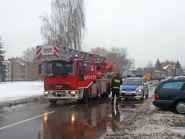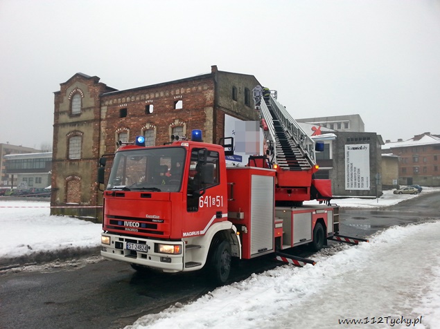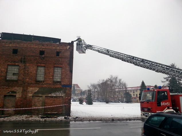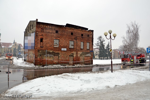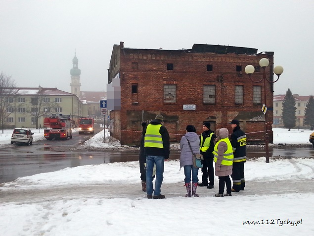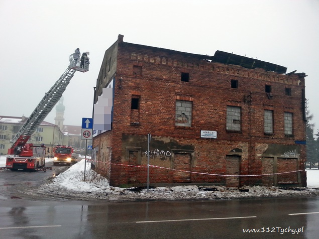 10 lutego około godziny 2.40 nad ranem do MSK w Tychach wpłynęło zgłoszenie o zawaleniu się dachu pustostanu na ul. Hlonda. Na miejsce wysłane zostały dwa zastępy z JRG Tychy (GBA, SD) oraz patrol tyskiej Straży Miejskiej. Po dotarciu na miejsce stwierdzono, że zawaleniu uległa część dachu budynku. Dach zawalił się do środka. Strażacy sprawdzili budynek. Nikogo w środku nie było. Przy użyciu drabiny mechanicznej strażacy usunęli śnieg z pozostałej części dachu. Działania zostały zakończone około godziny 4. Ponownie około godziny 9.30 w to miejsce udały się te same zastępy. Na miejscu byli już obecni przedstawiciele administracji oraz nadzór budowlany. Budynek od kilkunastu lat jest niezamieszkały i jest w fatalnym stanie technicznym. Do pomocy w zabezpieczeniu wezwany został patrol Policji i Straży Miejskiej. Ze względu na konieczność zamknięcia odcinka drogi na miejscu pojawili się przedstawiciele Nadzoru Ruchu UM Tychy. Do czasu zabezpieczenia budynku przez jego właściciela odcinek ul. Hlonda (od Bocheńskiego do Braterskiej) został zamknięty dla ruchu jak również ul. Braterska w okolicy budynku.