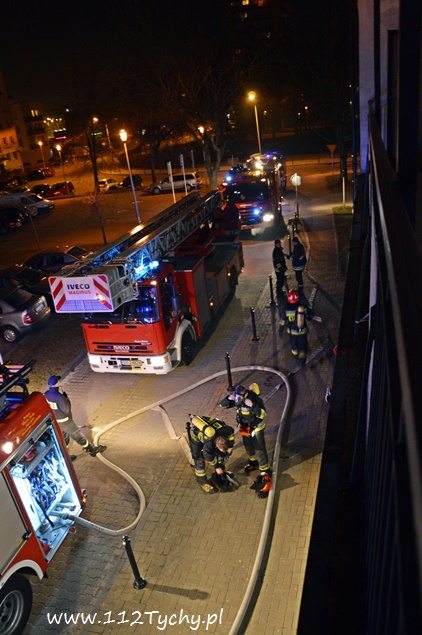 6 marca około godziny 21:55 do MSK Tychy wpłynęło zgłoszenie o zadymieniu w budynku wielorodzinnym w Tychach, na ul. Dębowej. Na miejsce zadysponowano 4 zastępy z JRG Tychy (GBA,GBA,GCBA,SD). Po dotarciu na miejsce i rozpoznaniu okazało się, że pożar wybuchł w pomieszczeniach piwnicznych. Strażacy w aparatach ochrony dróg oddechowych weszli do piwnicy. Celem ugaszenia pożaru podane zostały dwa prądy wody. Po kilku minutach sytuacja została opanowana. Przystąpiono do przewietrzania klatki schodowej oraz pomieszczeń piwnicznych. W czasie przewietrzania strażacy dodatkowo przeszukali piwnice, ponieważ istniało podejrzenie, że mogą się w nich znajdować osoby bezdomne. Na szczęście nikogo nie znaleziono. Na miejsce wezwani zostali również przedstawiciele administratora budynku. Po około godzinnych działaniach zostały one zakończone i zastępy wróciły do koszar.