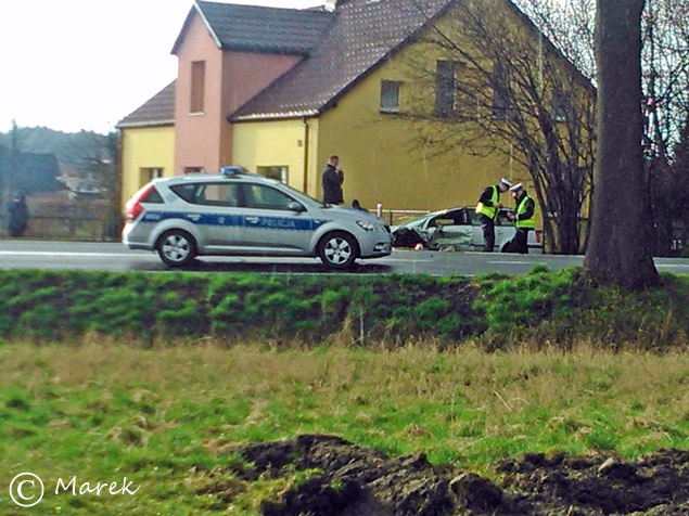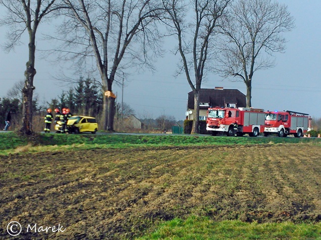 4 kwietnia około godziny 16.20 do MSK w Tychach wpłynęło zgłoszenie o zdarzeniu drogowym w Międzyrzeczu na ul. Żubrów. Ze zgłoszenia wynikało, że doszło do czołowego zderzenia dwóch samochodów osobowych: Seat-a i VW. Na miejsce wysłany został zastęp z OSP Międzyrzecze, trzy zastępy z JRG Tychy (GBA, GCBA, SCRt), ZRM i patrole Policji z KPP Bieruń. Po dotarciu na miejsce okazało się, że poszkodowane zostało troje dzieci w wieku 2, 9 i 12 lat. Cała trójka została zabrana do szpitala. Najmłodsza dziewczynka doznała ogólnych obrażeń, a najstarsza urazu oka i biodra. Winnym tego zdarzenia okazał się kierujący Seat-em 35 letni mieszkaniec Studzienic, który w rozmowie z funkcjonariuszami przyznał, że zagapił się na swoje dziecko. Zjechał on na przeciwny pas i doprowadził do zderzenia z VW Passat-em. Przez około 30 minut droga była całkowicie zablokowana. Ruchem kierowali strażacy. Dalsze czynności prowadzą funkcjonariusze Policji z KPP Bieruń.
