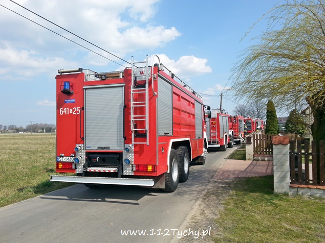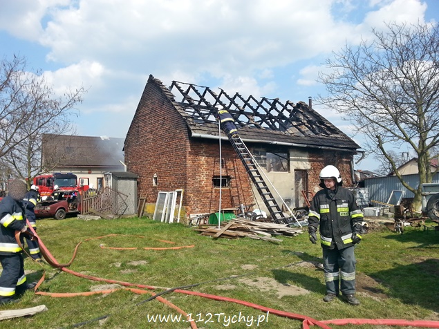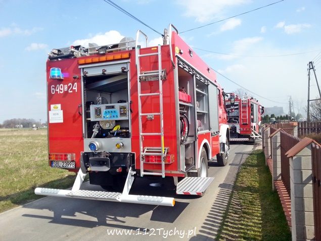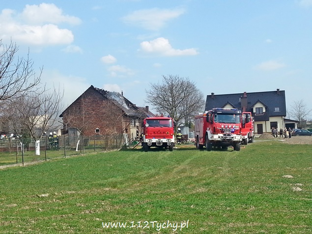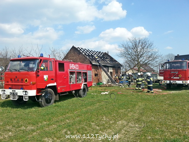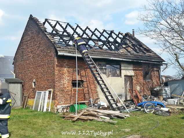 11 kwietnia przed godzina 14 do MSK w Tychach wpłynęło zgłoszenie o pożarze budynku gospodarczego – stodoły w Bieruniu przy ul. Zarzyny. Na miejsce wysłane zostało łącznie osiem strażackich zastępów: dwa z JRG Tychy (GCBA, GCBA), dwa z OSP Bieruń Nowy (GBARt, GCBA), dwa z OSP Bojszowy (GBA, GBA), jeden z OSP Czarnuchowice (GBA) i jeden z OSP Bieruń Stary (GBA). Już w trakcie dojazdu z ul. Warszawskiej widoczny był słup dymu. Po dotarciu na miejsce strażacy natychmiast przystąpili do działań gaśniczych. Wykonane zostało również zaopatrzenie wodne z pobliskiego hydrantu. W trakcie dojazdu ostatniego zastępu doszło do kuriozalnej sytuacji. Kierujący samochodem osobowym VW Passat na nr rej KOS ….. młody mężczyzna zatrzymał swój pojazd w poprzek drogi i nie potrafił z niej zjechać, blokując całkowicie drogę dojazdową do miejsca pożaru. Na szczęście ta sytuacja nie wpłynęła negatywnie na prowadzone działania ratowniczo – gaśnicze. Spaleniu uległ dach budynku jak i jego wyposażenie, a także jeden samochód osobowy. Po ugaszeniu ognia strażacy przystąpili do rozbiórki i przeszukania i przelania zgliszcz. Na miejsce wezwany został dodatkowo patrol bieruńskiej Policji i ZRM. Jedna osoba, mężczyzna w wieku ok. 50 lat z poparzonymi dłońmi został zabrany do szpitala. Dochodzenie w sprawie tego pożaru prowadzą bieruńscy Policjanci.