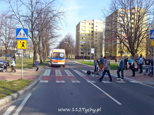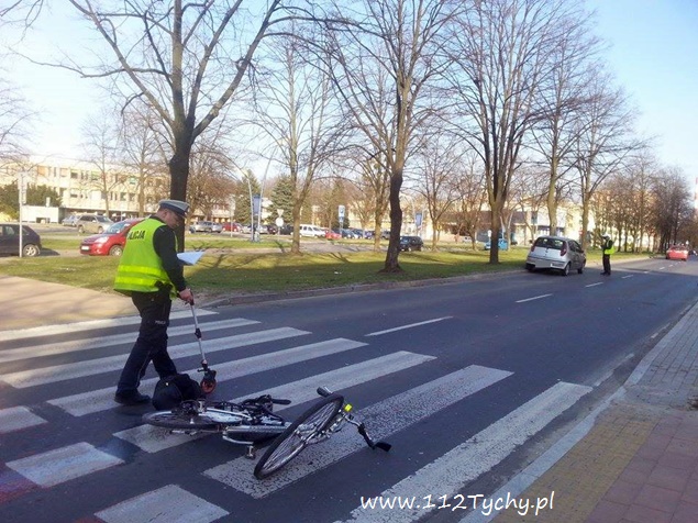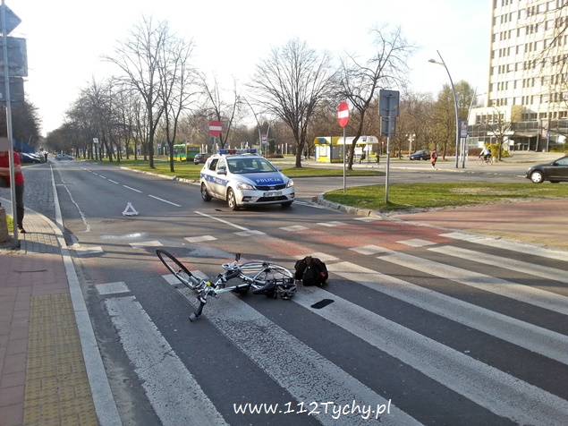 15 kwietnia około godziny 16.45 na oznakowanym przejściu dla pieszych na al. Niepodległości przy UM Tychy doszło do zdarzenia drogowego. Zdarzenie miało miejsce na pasie w kierunku ul. Wyszyńskiego. Doszło tam do zderzenia samochodu osobowego Fiat Punto z rowerzystą. Na miejsce wezwane zostało pogotowie ratunkowe i Policja. Poszkodowany rowerzysta został zabrany do szpitala na dokładniejsze badania. Ruch na al. Niepodległości został sparaliżowany. Samochody osobowe musiały zawracać, a autobusy zostały skierowane na objazd al. Niepodległości – Grota Roweckiego – Dąbrowskiego – Darwina – al. Niepodległości. Przez ponad dwie godziny ruch był znacznie utrudniony. Niestety nie wszyscy kierowcy rozumieli zaistniałą sytuację. Dokładne przyczyny i okoliczności tego zdarzenia wyjaśniają tyscy Policjanci.