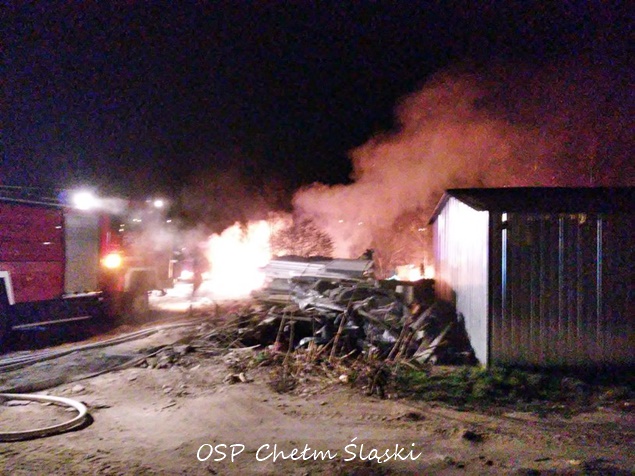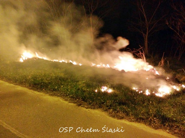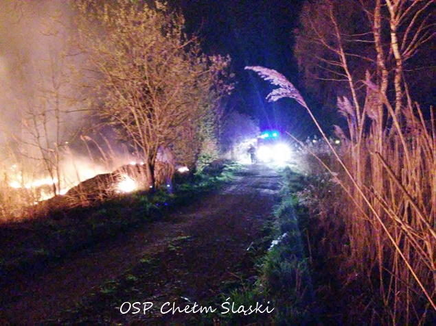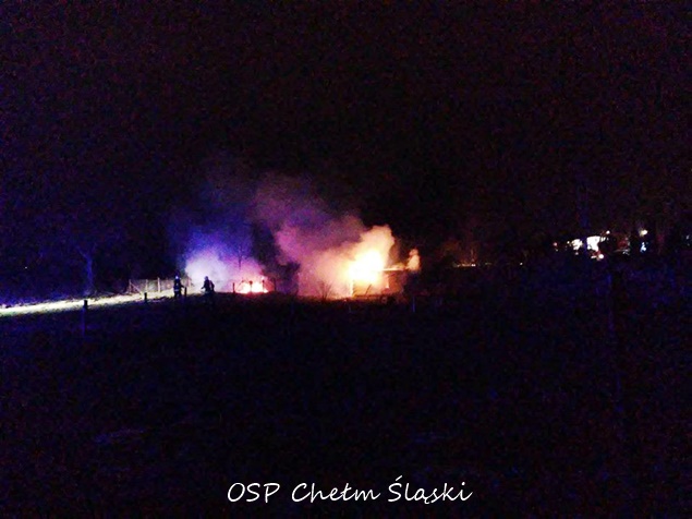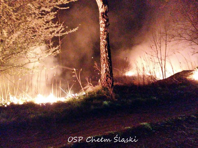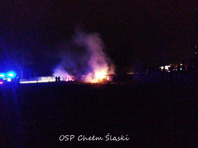 Piątkowy, spokojny wieczór o godzinie 20:53 przerwa dźwięk syreny. Zostaliśmy wezwani do pożaru zabudowań gospodarczych przy ulicy Górnośląskiej, nieopodal sklepu w Chełmie Małym. Na miejscu zastaliśmy zgliszcza gołębnika i płonącą altanę działkową, w której znajdowała się butla z gazem. Działania polegały na ugaszeniu ognia, zlokalizowaniu i wyciągnięciu butli z płonącego pomieszczenia oraz jej schładzanie. Na miejscu działań JRG Tychy, OSP Chełm Śląski i OSP Bieruń Nowy. W trakcie działań jeden z mieszkańców zgłosił nam pożar przy ulicy Romera. Nasz zastęp udał się tam celem sprawdzenia. Na miejscu zastano około 50m palącej się trawy. Po 15 min zastęp wrócił na miejsce pierwszego zgłoszenia. Ze względu na stan właściciela posesji dowódca dodatkowo zadysponował na miejsce akcji ZRM.
