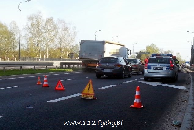 Kolizja osobówek na DK 1 w Tychach
