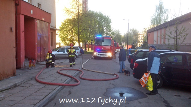 27 kwietnia około godziny 7.25 do MSK w Tychach wpłynęło zgłoszenie z WCPR Katowice o zadymieniu w budynku wielorodzinnym przy ul. Jana Pawła II. Na miejsce wysłany został pluton gaśniczy z JRG Tychy (GBA, GBA, GCBA, SD). Po dotarciu na miejsce stwierdzono zadymienie, które występowało z powodu tlącej się szmaty przed jednym z mieszkań na 9 piętrze. Strażacy rozwinęli jedną linię gaśniczą. Tląca się szmata została ugaszona i wyniesiona z budynku. Przewietrzona została klatka schodowa. Sprawdzone zostały hydranty. Działania trwały około 40 minut