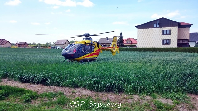 16 maja około godziny 12:35 zastępy OSP Bojszowy (GBA) i JRG Tychy (GCBA, SCRt) zostały zadysponowane do zabezpieczenia lądowiska dla śmigłowca LPR Ratownik 4 z bazy w Gliwicach. Śmigłowiec został wezwany do Bojszów na ul. Żytnią, gdzie doszło do wypadku. Mężczyzna spadł z wysokości doznając urazu czaszkowo – mózgowego. Ratownicy medyczni będący na miejscu podjęli decyzje o konieczności transportu poszkodowanego do szpitala w Sosnowcu. Poszkodowany mężczyzna w trakcie transportu znajdował się w stanie ciężkim.