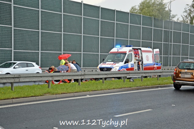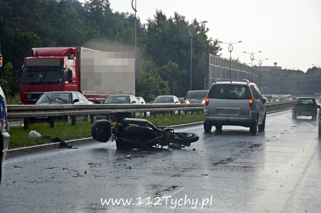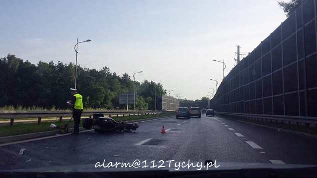 14 czerwca około godziny 17 na DK – 1 w kierunku Bielska Białej na wysokości zjazdu z DK – 44 doszło do zdarzenia drogowego z udziałem samochodu osobowego i motocykla. Kierujący samochodem osobowym Fiat Brava zmieniając pas ruchu nie zasygnalizował kierunkowskazem manewru. Jadący lewym pasem motocyklista nie zdążył wyhamować i doszło do zdarzenia. Na miejsce wezwany został patrol WRD KMP Tychy i ZRM. Kierujący motocyklem mężczyzna doznał urazu miednicy i nogi. Poszkodowany został przewieziony do szpitala na dalszą diagnostykę. W miejscu zdarzenia tworzyły się korki. Niestety kierowcy jadący w przeciwnym kierunku całkowicie spowolnili ruch – zaglądali co się stało. Ze względu na rodzaj zdarzenia na miejsce wezwany został również policyjny technik. Przez około dwie godziny lewy pas w miejscu zdarzenia był wyłączony z ruchu. Tyscy Policjanci prowadzą dalsze dochodzenie w tej sprawie.