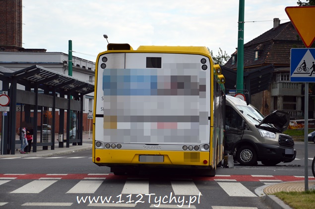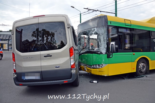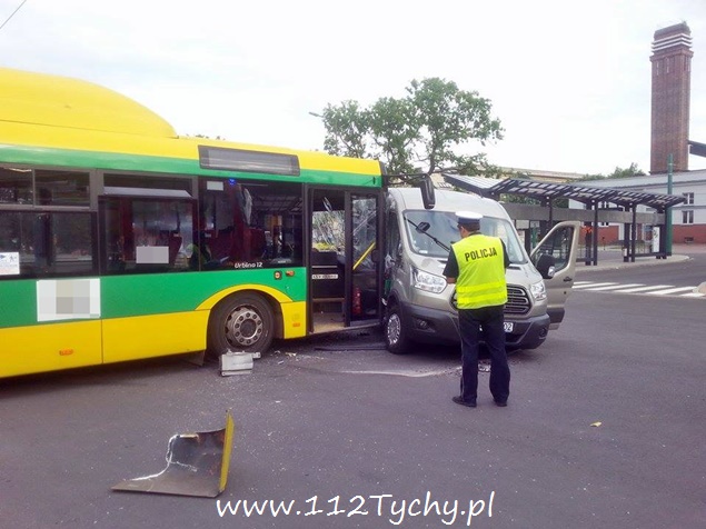 Kolizja autobusu miejskiego z busem na dworcu autobusowym w Tychach