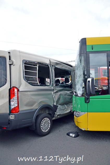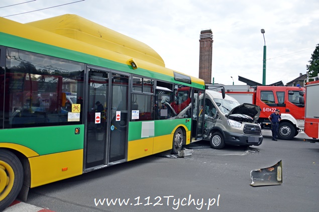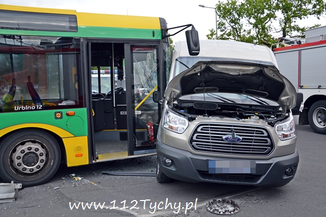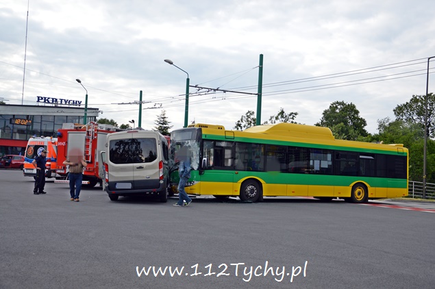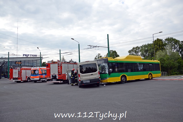24 czerwca przed godziną 18 na terenie dworca autobusowego przy ul. Andersa doszło do groźnego zdarzenia drogowego. W przejeżdżającego Forda Transita, którym podróżowało osiem osób (7 i kierowca) uderzył autobus miejski linii 51, w którym znajdował się tylko kierowca. Na miejscu pierwsi pojawili się tyscy strażnicy miejscy, będący w swojej siedzibie na terenie dworca PKP Tychy. Natychmiast na miejsce skierowane zostały wszystkie służby – cztery zastępy z JRG Tychy (GBA, GBA, GCBA, SCRt), patrol tyskiej drogówki i dwa ZRM. Łącznie poszkodowane zostały trzy osoby. Dwie zostały opatrzone na miejscu a jedna została profilaktycznie została przewieziona do szpitala na dokładniejsze badania. Kierowcy obydwóch pojazdów byli trzeźwi. Działania strażaków polegały na odłączeniu akumulatorów i zasilania CNG w autobusie. Z ustaleń pracujących na miejscu policjantów wynika, że kierujący autobusem nie ustąpił pierwszeństwa prawidłowo jadącemu kierującemu Ford-em. Uszkodzone pojazdy zostały odholowane. Strażacy dodatkowo zneutralizowali wycieki płynów eksploatacji. Przez około dwie godziny ruch autobusowy w obrębie dworca był utrudniony. Zdarzenie została zakwalifikowane jako kolizja, a sprawca zdarzenia – kierowca autobusu miejskiego – został ukarany mandatem.