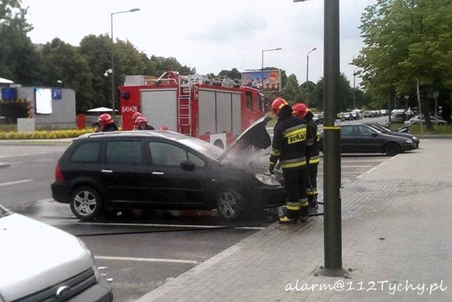 27 czerwca około godziny 18:15 do MSK Tychy wpłynęło zgłoszenie o pożarze samochodu osobowego na ul. Dąbrowskiego w okolicy nowego parkingu. Na miejsce zostały zadysponowane 2 zastępy z JRG Tychy (GBA,GCBA). Po dotarciu na miejsce okazało się, że z pod maski samochodu osobowego marki Peugeot wydobywa się ogień. Strażacy przy użyciu jednego prądu wody, szybkiego natarcia ugasili pożar. Prawdopodobną przyczyną powstania ognia był samozapłon. Po 30 minutach działania zakończono i zastępy wróciły do koszar.