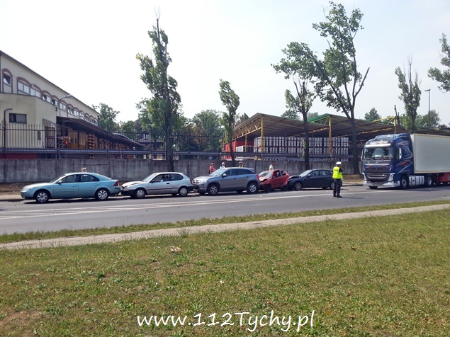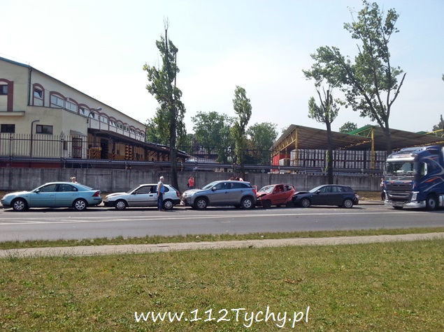 23 lipca około godziny 11.30 na ul. Mikołowskiej w ciągu DK 44 na wysokości Browaru doszło do zdarzenia drogowego z udziałem sześciu samochodów (pięć osobówek i jedna ciężarówka). Pas w kierunku na Oświęcim został zablokowany. Ruch w miejscu zdarzenia odbywał się wahadłowo. Na miejsce wezwany został patrol drogówki i dwa zastępy strażaków z JRG Tychy (GBA, SCRt). Widząc zniszczone samochody, aż dziw że nikomu nic się nie stało. Przez około półtorej godziny ruch był utrudniony. Policjanci wyjaśniają przyczyny tego zdarzenia.