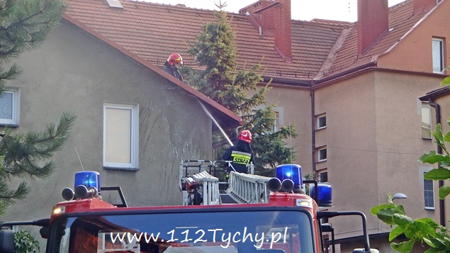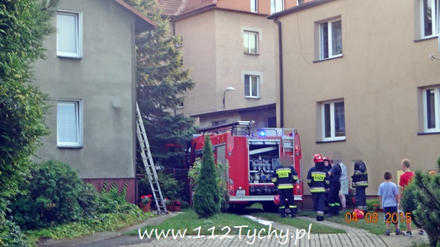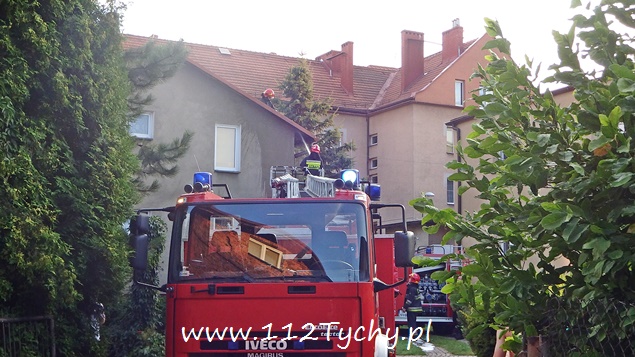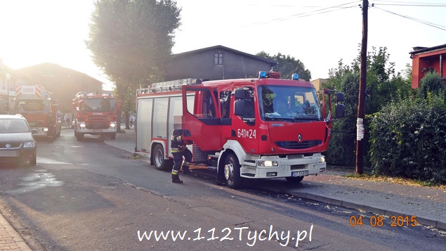 4 sierpnia około godziny 19 do MSK w Tychach wpłynęło zgłoszenie o zadymieniu w jednym z domów jednorodzinnych przy ul. Sienkiewicza. Na miejsce wysłane zostały cztery zastępy z JRG Tychy (GBA, GBAPr, GCBA, SD). Na miejscu okazało się, że pożarem objęte jest około 1m2 dachu (deski, gonty). Podany został jeden prąd środka gaśniczego. Prawdopodobną przyczyna pożaru było najprawdopodobniej zwarcie instalacji elektrycznej. Działania strażaków na miejscu trwały około godziny.