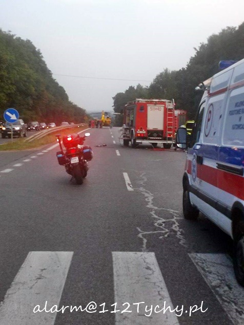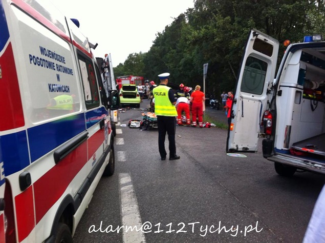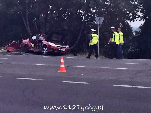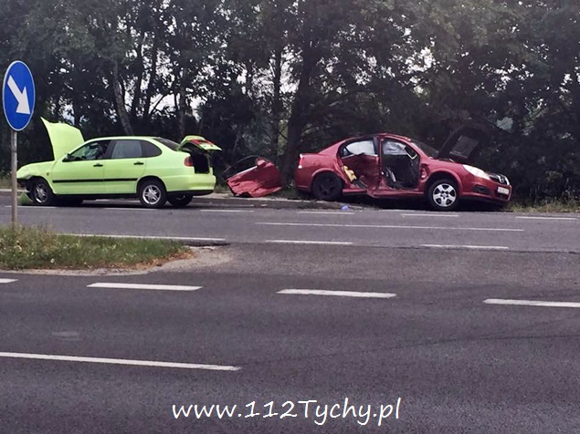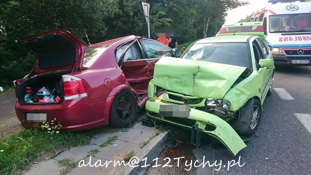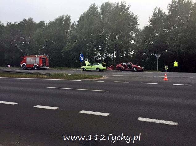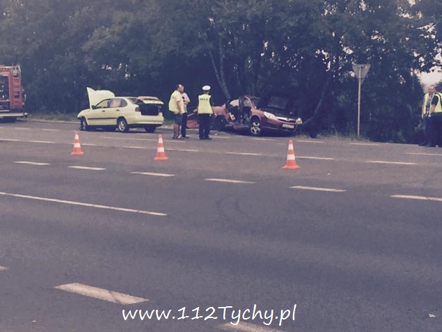 14 sierpnia około godziny 17 na ul. Krakowskiej w ciągu DK 44 doszło do zdarzenia drogowego z udziałem dwóch samochodów osobowych. W zdarzeniu brał udział Seat Cordoba i Opel Vectra. Jak się okazało Opel to nieoznakowany radiowóz wyposażony w video rejestrator, będący na wyposażeniu WRD KMP Tychy. Na miejsce natychmiast wysłane zostały zastępy strażaków z JRG Mikołów, ZRM ora patrole Policji z KPP Mikołów i KMP Tychy. Droga w kierunku Tychów została całkowicie zablokowana. Po dotarciu na miejsce strażacy przy użyciu narzędzi hydraulicznych musieli wykonać dostęp do zakleszczonego w radiowozie funkcjonariusza. Łącznie poszkodowanych w zdarzeniu zostało pięć osób ( trzy osoby z Seata i dwóch funkcjonariuszy KMP Tychy). Obrażenia jednego z funkcjonariuszy były na tyle poważne, że został on przetransportowany do szpitala w Sosnowcu, śmigłowcem LPR. Pozostali poszkodowani trafili do szpitali w Katowicach Ochojcu (drugi funkcjonariusz) oraz do Tychów (ranni z Seata). Na miejsce wypadku wezwana została grupa dochodzeniowa oraz prokurator. Ze wstępnych ustaleń wynika, że do zdarzenia doszło podczas wykonywania manewru zawracania. Kierujący radiowozem funkcjonariusz nie zauważył jadącego Seat-a. Radiowoz nadaje sie tylko do kasacji. Na czas trwania działań ratowniczych oraz wykonania dokumentacji wyznaczony zostal objazd w kierunku Tychow przez Kobiór. Dokładne przyczyny i okoliczności tego wypadku wyjaśni dochodzenie prowadzone przez Policjantów z KPP Mikołów pod nadzorem prokuratury.