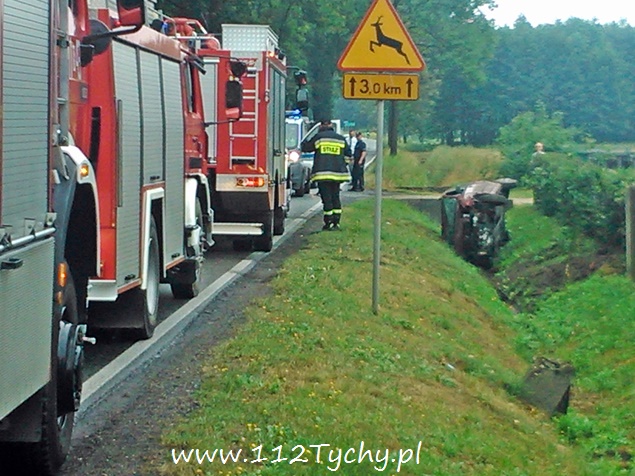 17 sierpnia około godziny 15.50 do MSK w Tychach wpłynęło zgłoszenie o zdarzeniu drogowym w Międzyrzeczu na ul. Żubrów na wysokości zjazdu na Wolę. Na miejsce wysłane zostały trzy zastępy strażaków: jeden z OSP Bojszowy Nowe (GBA) i dwa z JRG Tychy (GBA, SCRt). Dodatkowo na miejsce zadysponowany został ZRM i patrole Policji z KPP w Bieruniu. Po dotarciu na miejsce okazało się, że doszło do zdarzenia, w którym brał udział jeden samochód osobowy: Fiat Panda. Z nieustalonych przyczyn kierująca Fiat – em kobieta jadąc od Pszczyny w kierunku Bojszów utraciła panowanie nad swoim pojazdem i wjechała do rowu – prawdopodobnie ktoś wymusił jej pierwszeństwo. W wyniku zdarzenia kobieta wypadła z pojazdu. Pomocy kobiecie udzielili mieszkańcy pobliskiego domu. Przybyły na miejsce ZRM przetransportował kobietę do szpitala w Tychach. Na czas działań ruch w miejscu zdarzenia został wstrzymany, a Policja wyznaczyła objazdy. Działania strażakow polegały na odłączeniu zasilania oraz sprawdzeniu czy pojazd nie jest wyposażony w instalację gazową. Utrudnienia w ruchu trwały około dwóch godzin. Dokładne przyczyny i okoliczności tego zdarzenia wyjaśniają bieruńscy policjanci.