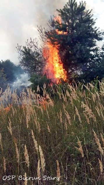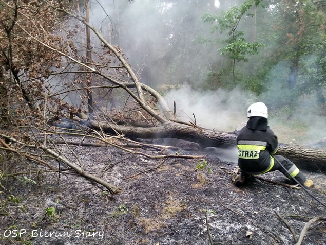 23 sierpnia około godziny 17 do MSK w Tychach wpłynęło zgłoszenie o pożarze traw i poszycia leśnego w Bieruniu Starym niedaleko ul. Chemików. Na miejsce wysłane zostały zastępy z: dwa z JRG Tychy (GBA, GCBA), trzy z OSP Bieruń Stary (GBA, GCBA, SLRr), dwa z OSP Bieruń Nowy (GBARt, GCBA) i jeden z OSP Bojszowy (GBA). Dodatkowo do pomocy wezwany został samolot gaśniczy DROMADER. Łącznie spaleniu uległ obszar o powierzchni około 2,5 ha. Działania strażaków trwały ponad trzy godziny. Pożar powstał najprawdopodobniej w wyniku podpalenia.