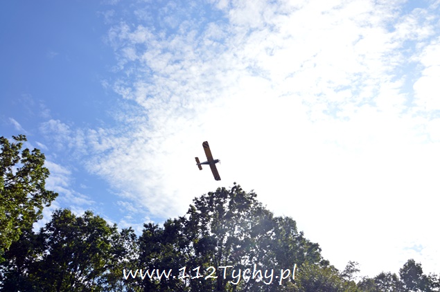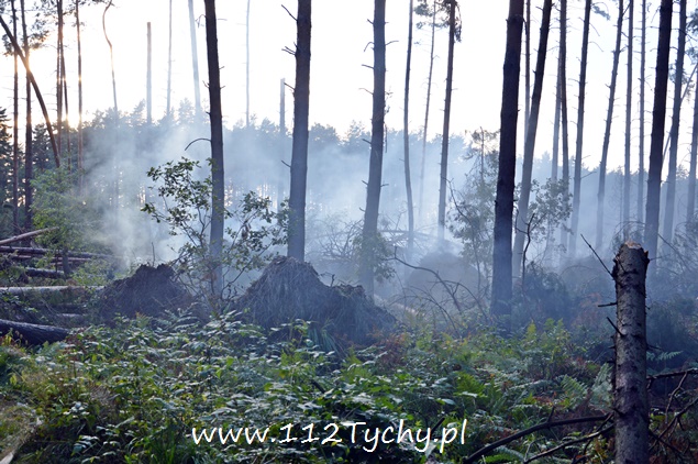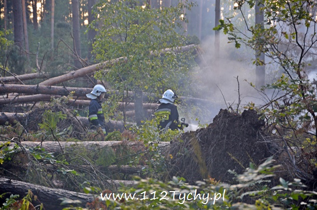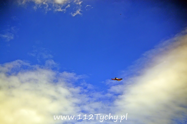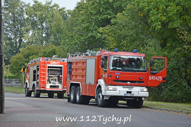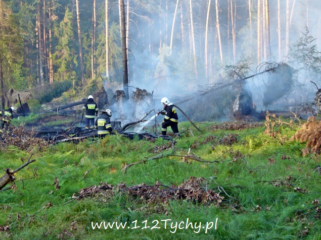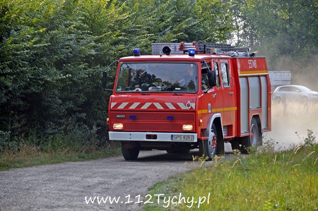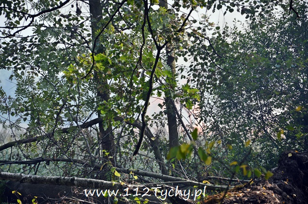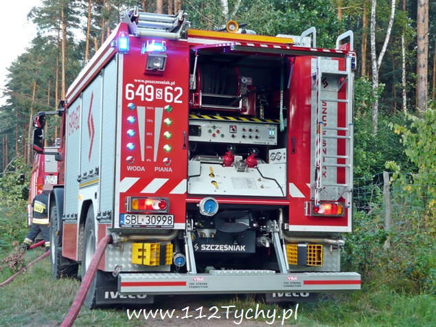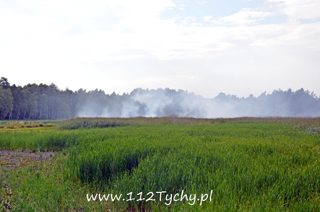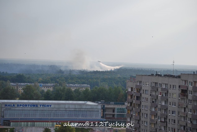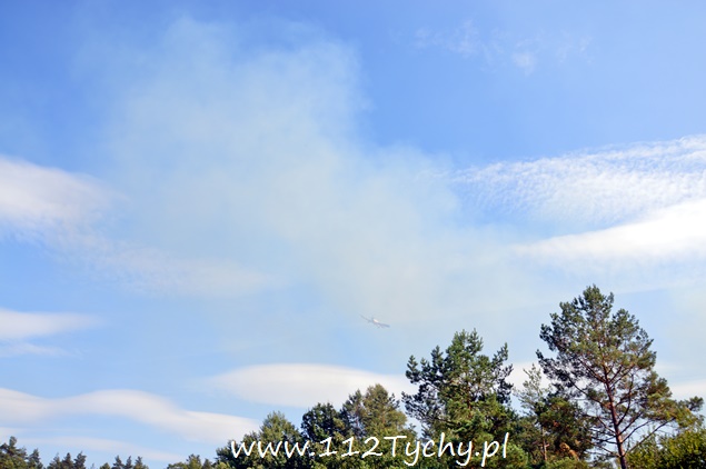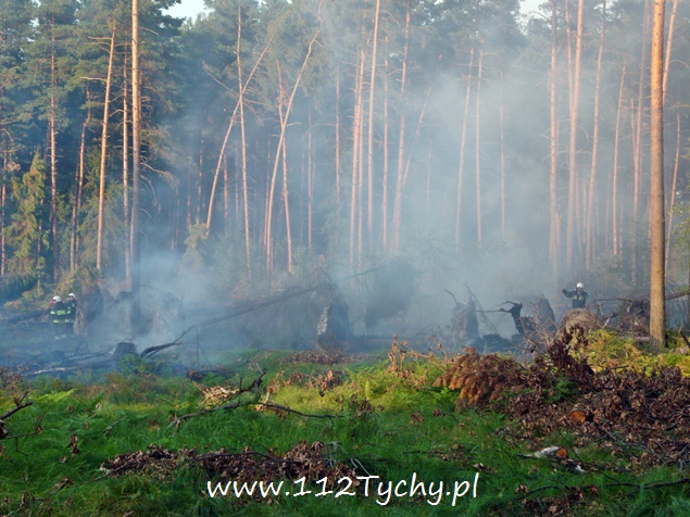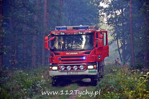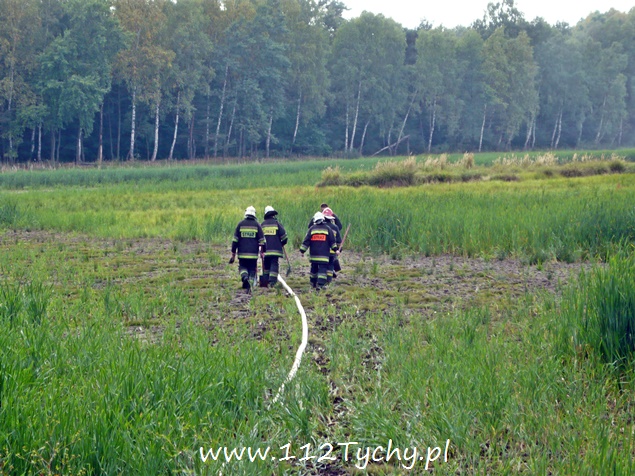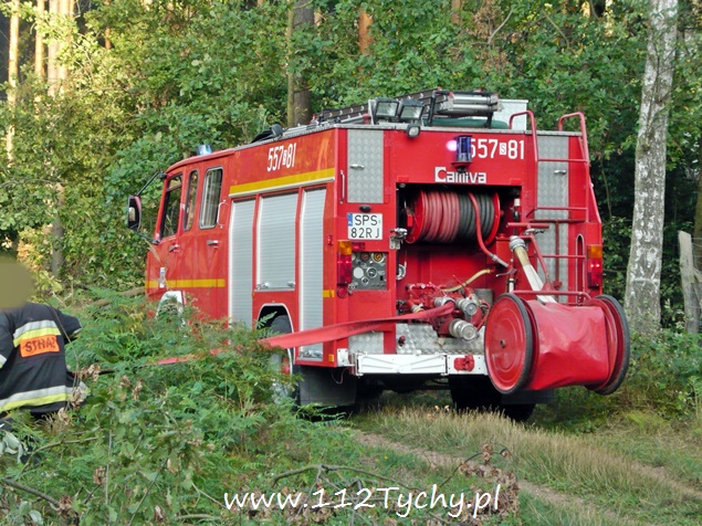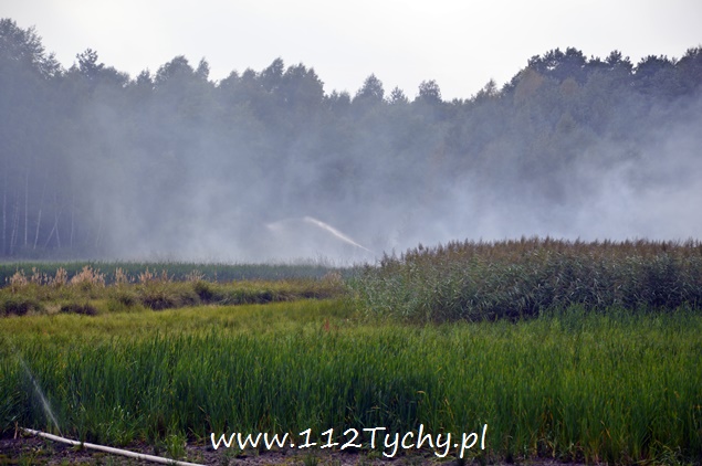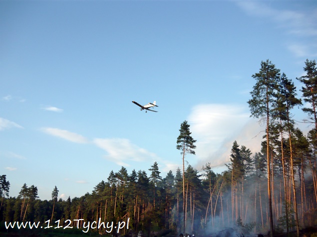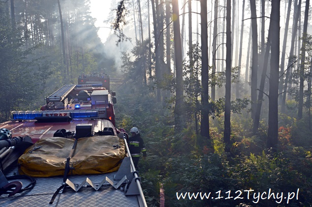 28 sierpnia około godziny 15 do MSK w Tychach wpłynęło zgłoszenie o pożarze lasu w okolicach ulicy Sikorskiego. Na miejsce natychmiast wysłane zostały dwa zastępy z JRG Tychy (GBA, GCBA). Już w trakcie dojazdu pojawiły się trudności ze zlokalizowaniem drogi pożarowej, która umożliwiałaby przeprowadzenie akcji gaśniczej. Po zlokalizowaniu i dotarciu na miejsce okazało się, że pożarem objęte są chaszcze i tatarak na wyschniętym stawie. Ze względu na trudności z zaopatrzeniem w wodę, KDR wezwał na miejsce kolejne zastępy: dwa z JRG Tychy (GBA, GCBA) i jeden z OSP Chełm Śląski (GBA). Na miejsce akcji dojechał dowódca JRG Tychy (SLRr), który przejął dowodzenie akcją gaśniczą. Zaopatrzenie wodne zostało wykonane z hydrantu oddalonego o prawie 300m o wozów bojowych uczestniczących w akcji gaśniczej. Pożar był oddalony o kolejne 300m od brzegu wyschniętego stawu. Od ulicy Sikorskiego patrole Policji nie dopuszczały osób postronnych do miejsca pożary. W akcji gaśniczej brały udział również dwa samoloty gaśnicze DROMADER. Około godziny 17.30 do KDR dotarło kolejne zgłoszenie o pożarze oddalonym od miejsca poprzedniego pożaru o około 700m – na pograniczu Tychów i Kobióra. Do akcji ruszyły dwa zastępy z JRG Tychy (GBA, SLRr) i jeden zastęp z OSP Chełm Śląski. Po dotarciu na miejsce KDR natychmiast zadysponował wsparcie. Do pomocy zadysponowane zostały dwa zastępu z OSP Bieruń Stary (GBA, GCBA) i jeden zastęp z OSP Kobiór (GBARt). Łącznie w obydwu pożarach uległo spaleniu ponad 100 arów. W trakcie zabezpieczenia miejsca działań gaśniczych jeden z patroli Policji napotkał mężczyznę, którego zachowanie ich zainteresowało. Jak się okazało po krótkiej rozmowie, mężczyzna mógł mieć coś wspólnego z powstałymi wcześniej pożarami. Mężczyzna został zatrzymany i przewieziony do KMP Tychy celem wykonania dalszych czynności. Dogaszanie i zabezpieczenie pogorzeliska potrwa do późnych godzin nocnych.