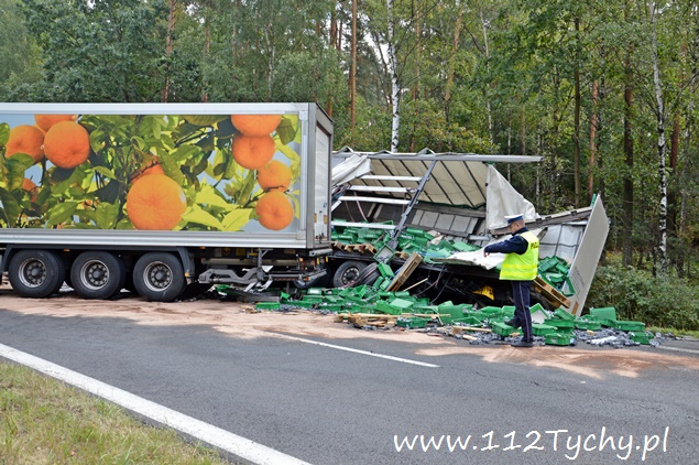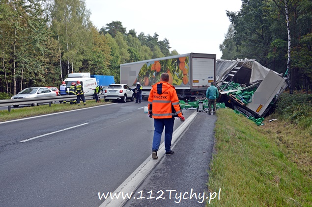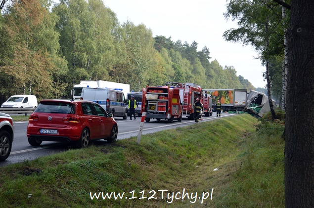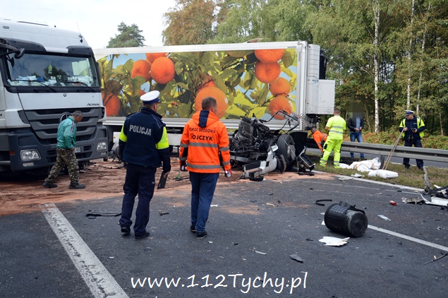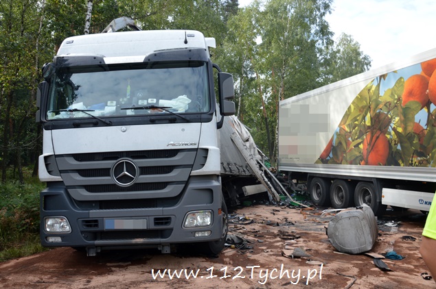 Wypadek ciężarówek na DK 1 w Kobiórze