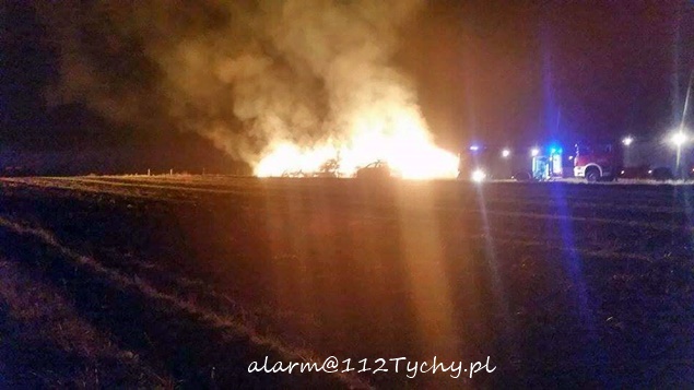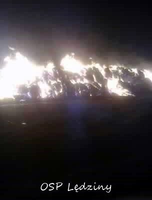 Pożar balotów słomy w Lędzinach