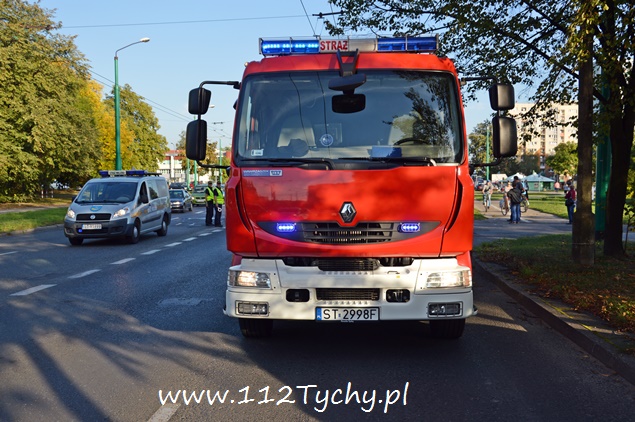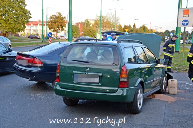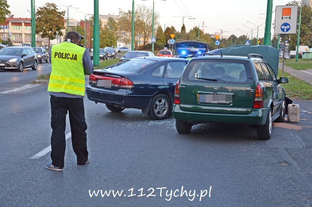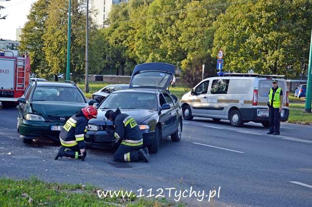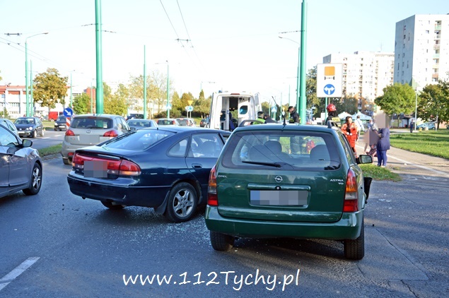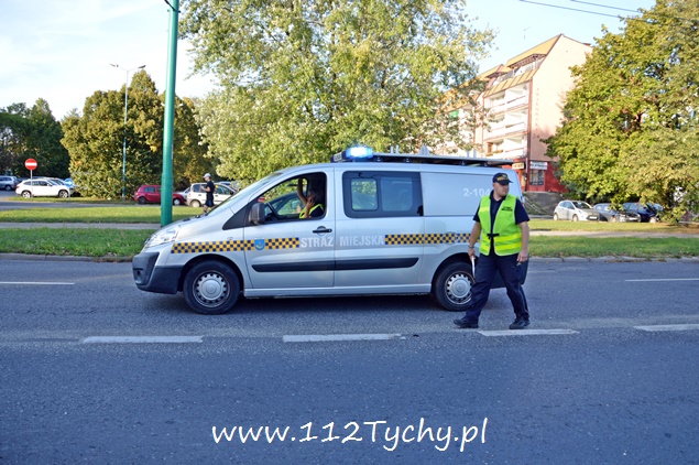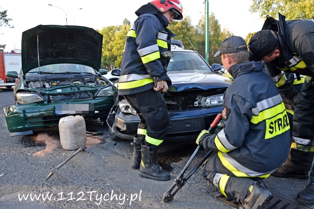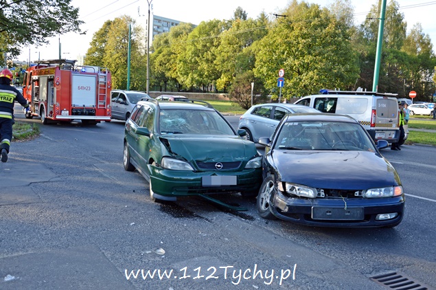 22 września około godziny 17 na ul. Żwakowskiej na wysokości zjazdu na parking Zespołu Szkół nr 4 w kierunku ronda Polonia (Żwakowska – Bielska – Jana Pawła II) doszło do zdarzenia drogowego z udziałem dwóch samochodów osobowych. W zdarzeniu brały udział Mazda i Opel. Zgłoszenie o zdarzeniu wpłynęło do dyżurnego MSK Tychy i KMP Tychy. Na miejsce zadysponowany został zastęp z JRG Tychy (GBA), patrol Policji i ZRM. Po dotarciu na miejsce okazało się, że kierujący Mazdą został poszkodowany. Przybyli na miejsce strażacy udzielili mu kwalifikowanej pierwszej pomocy i przekazali przybyłemu na miejsce ZRM. W miejscu zdarzenia zatrzymał się patrol Straży Miejskiej, który do czasu przyjazdu Policji pomógł w zabezpieczeniu miejsca zdarzenia. Jak się później okazało poszkodowana została również dwójka pasażerów Mazdy: kobieta i kilkuletnie dziewczynka (która była przewożona samochodem bez fotelika). Celem ich przetransportowania do szpitala na miejsce wezwana została druga karetka pogotowia. Strażacy dodatkowo odłączyli akumulatory w rozbitych pojazdach i zneutralizowali płyny eksploatacyjne. W trakcie wykonywania czynności przez funkcjonariuszy Policji wyszło na jaw co było prawdopodobną przyczyną tego zdarzenia. Kierujący Oplem był trzeźwy, tego samego niestety nie można powiedzieć o kierującym Mazdą. Mężczyzna w asyście wezwanego na miejsce patrolu prewencji został przetransportowany do szpitala na dalsze badania. W miejscu zdarzenia występowały duże utrudnienia w ruchu. W związku z rodzajem zdarzenia na miejsce został wezwany policyjny technik kryminalistyki. Po wykonaniu dokumentacji uszkodzone pojazdy zostały usunięte na pobliski parking. Mazda została zabezpieczona i odwieziona na parking policyjny, a Opel został odholowany przez pomoc drogową. Dalsze czynności w sprawie tego zdarzenia prowadzą policjanci KMP Tychy.