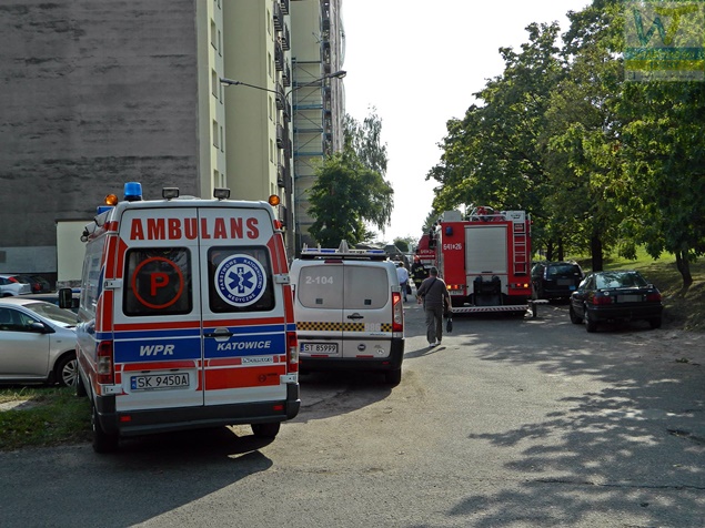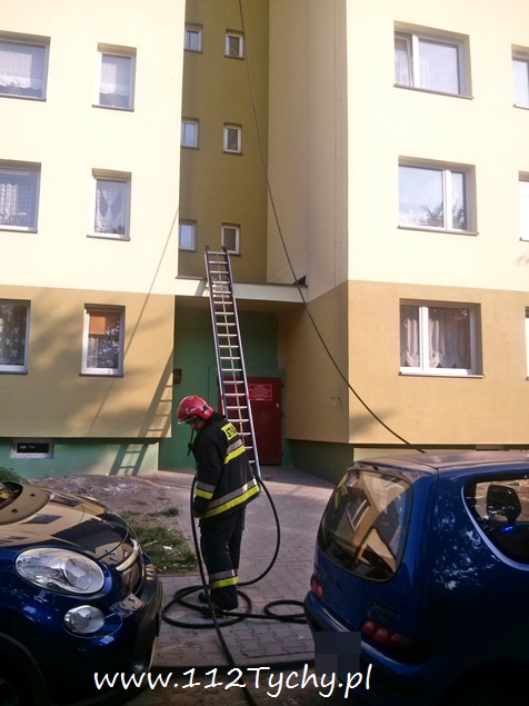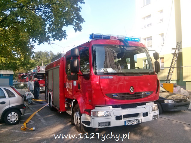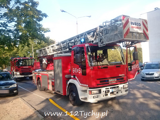 W dniu wczorajszym, tj. 23 września około godziny 14.20 do MSK w Tychach wpłynęło zgłoszenie o zadymieniu na ostatnim piętrze w budynku wielorodzinnym przy ulicy Jaracza. Ze zgłoszenia wynikało, że tli się izolacja – ocieplenie stropu. Na miejsce wysłane zostały trzy zastępy z JRG Tychy (GBA, GCBA, SD). Po dotarciu na miejsce i rozpoznaniu sytuacji okazało się, że tli się wełna mineralna użyta do ocieplenie stropu budynku. Ze względu na rodzaj pożaru strażacy pracowali w aparatach ochrony dróg oddechowych. W momencie wybuchu pożaru w jego miejscu znajdował się mężczyzna, jak się później okazało bezdomny, który z objawami podtrucia dymem został zabrany do szpitala na dalsze badania zadysponowanym na miejsce ZRM. Dodatkowo na miejsce wezwany został patrol Straży Miejskiej i patrol Policji. Dostęp do miejsce pożaru był bardzo utrudniony. Miejsce działania miało wysokość około 60cm. Do ugaszenia pożaru użyta została linia szybkiego natarcia. Celem dokładnego zlokalizowania pożaru jak i sprawdzeniu po zakończeniu działań na miejsce wezwany został zastęp JRG Tychy (SLRt), który przywiózł kamerę termowizyjną. Spaleniu uległo około 30m2 wełny użytej do izolacji. Działania na miejscu trwały prawie trzy i pół godziny. Prawdopodobną przyczyną pożaru było zaprószenie ognia przez mężczyznę odwiezionego do szpitala. Na miejscu byli również obecni pracownicy spółdzielni mieszkaniowej, w której zasobach znajduje się budynek.