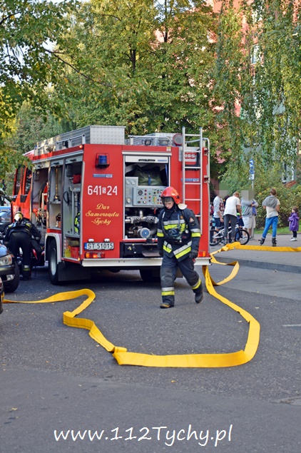 29 września o godzinie 17.24 do MSK w Tychach wpłynęło zgłoszenie o zadymieniu w budynku wielorodzinnym przy ulicy Różyckiego. Na miejsce wysłane zostały trzy zastępy z JRG Tychy (GBAPr, GCBA, SD). Po dotarciu na miejsce okazało się, że powodem zadymienia jest pożar śmieci w szybie windowym. Strażacy odłączyli zasilanie windy i przy użyciu linii szybkiego natarcia przystąpili do gaszenia. Po kilkunastu minutach pożar został ugaszony. Po ugaszeniu pożaru strażacy przystąpili do oddymiania i przewietrzania klatki schodowej. Dodatkowo sprawdzone zostały pobliskie hydranty. Działania na miejscu trwały ponad godzinę. Na miejsce wezwani zostali przedstawiciele administracji budynku.